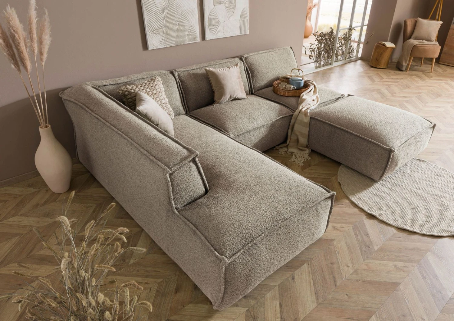 Morbido come un orsacchiotto: divano con rivestimento in bouclé di tendenza