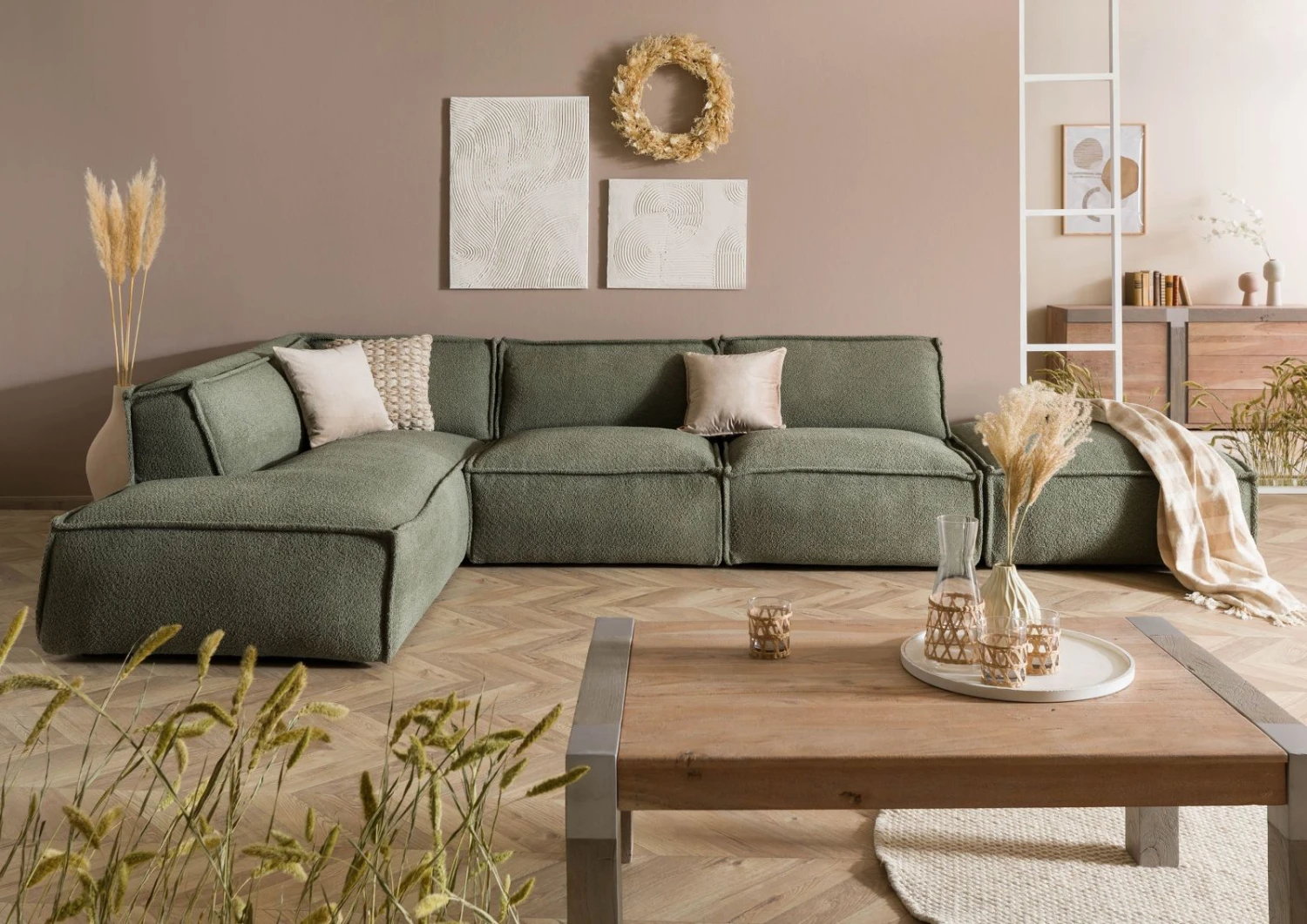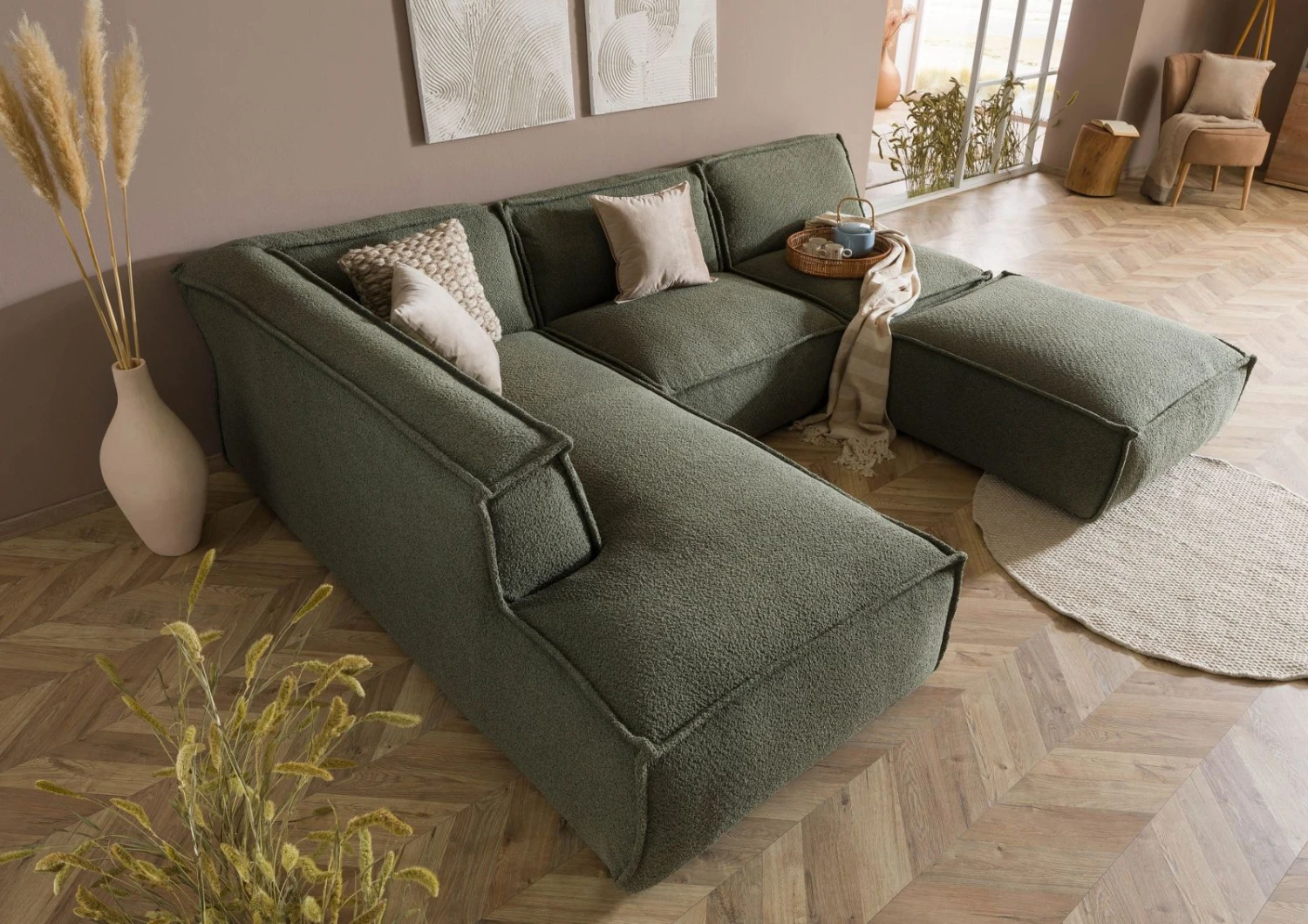 Morbido come un orsacchiotto: divano con rivestimento in bouclé di tendenza