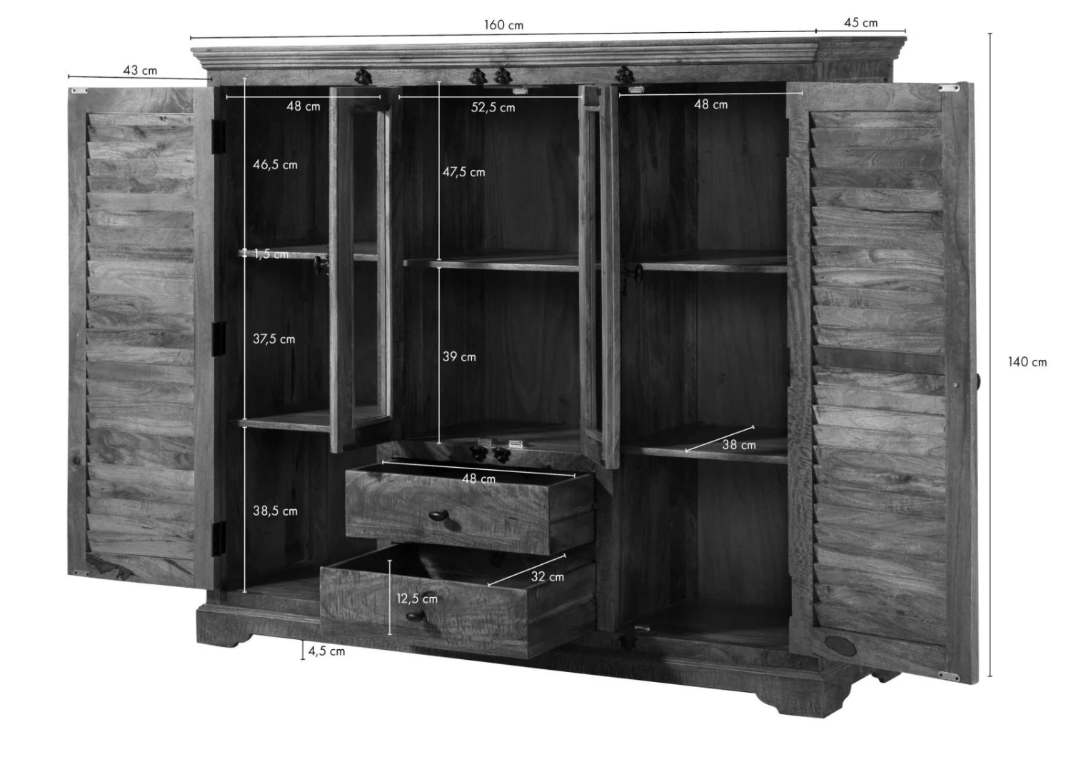 160x45x140 cm (LxPxA)