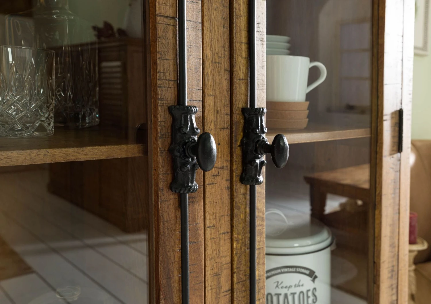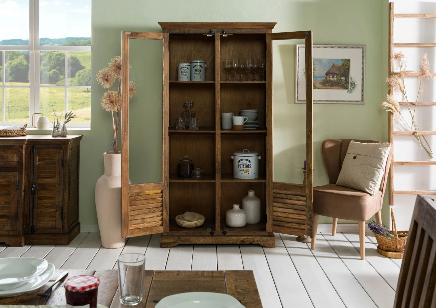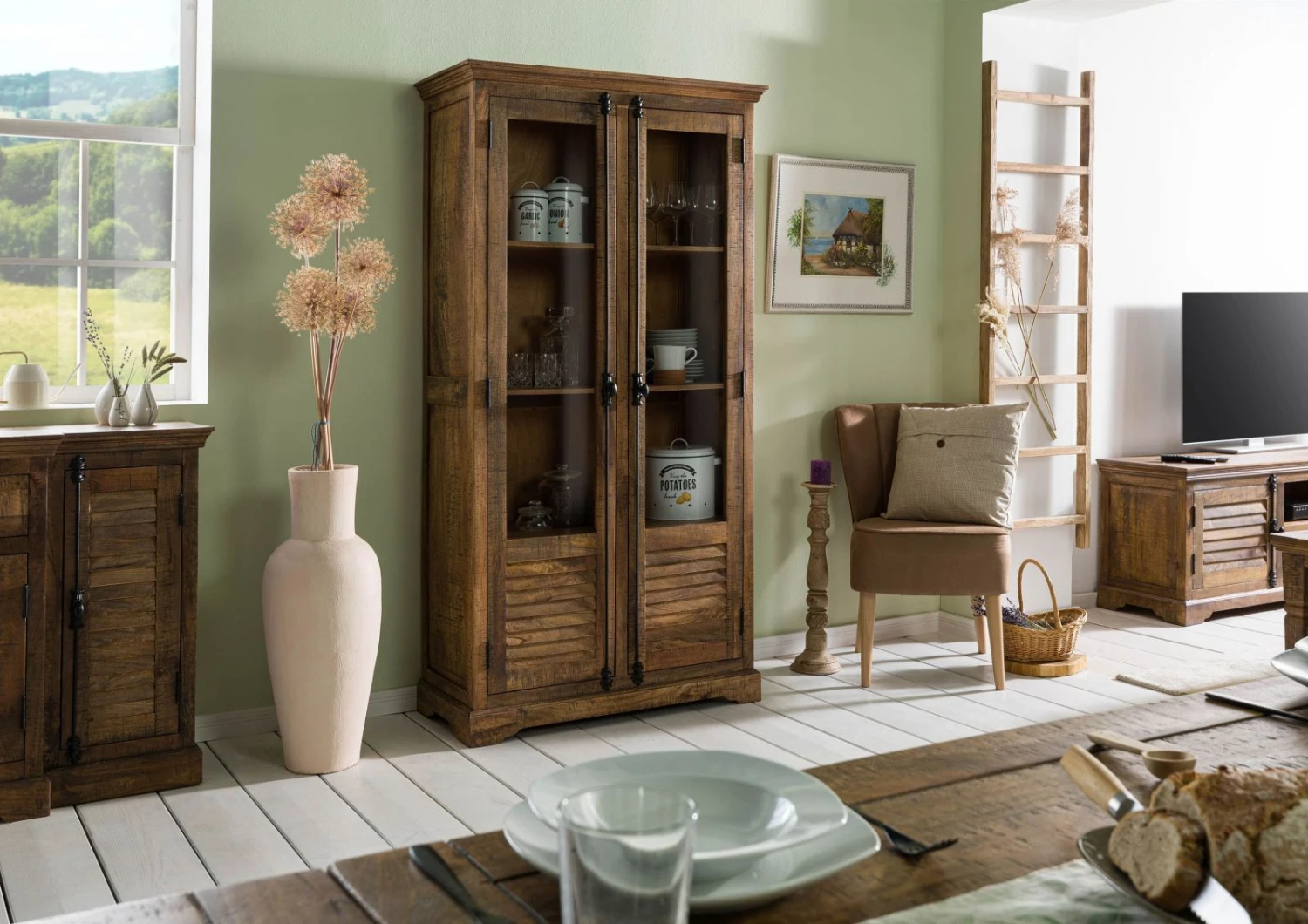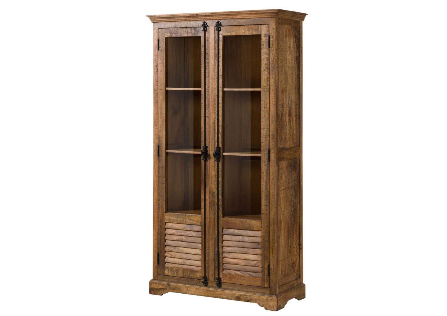 - Vetrina rustica con ante a lamelle realizzata in legno di mango