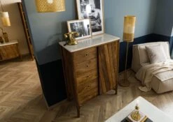 Cassettiera In Legno Di Mango 90x45x120 Marrone Oliato / Vero Marmo LOS ANGELES #10