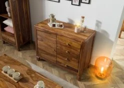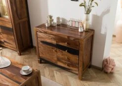 ANCONA #115 Comò In Legno Di Sheesham – Laccato / Marrone 100x45x80