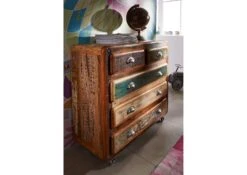FABLE #02 Comò In Legno Riciclato – Laccato / Multicolore 80x42x88