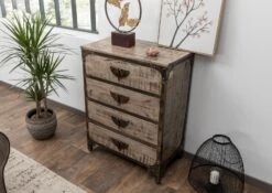 TOKYO #205 Cassettiera In Legno Di Mango E Ferro -laccato / Marrone 70x40x89