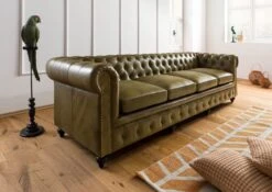 CHESTERFIELD #304 Divano 4 Posti – Vera Pelle / Verde 274x82x75