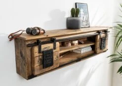 Mensola In Legno Di Mango / Legno Riciclato 115x30x45 Laccato Naturale RAILWAY LUX #150