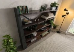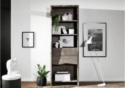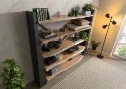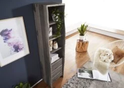 Scaffale In Legno Di Acacia 71x45x204 Grigio Scuro Laccato PURE ACACIA #409
