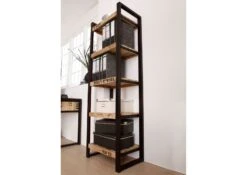 Scaffale In Legno Di Mango 60x40x180 Mango Naturale Stampato FACTORY #108
