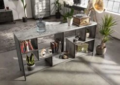 Scaffale In Legno Di Mango 183x40x90 Grigio Scuro Laccato HEAVY INDUSTRY #106