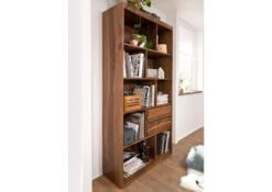 Scaffale In Legno Di Sheesham / Palissandro 65x42x180 Marrone Laccato NEW BOSTON #200