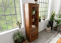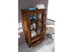 Vetrina In Legno Di Sheesham / Palissandro 60x40x178 Noce Oliato BROOKLYN #26