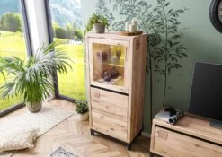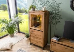 Vetrina In Legno Di Quercia Selvatica 65x40x148 Quercia Naturale Oliato VILLANDERS #104