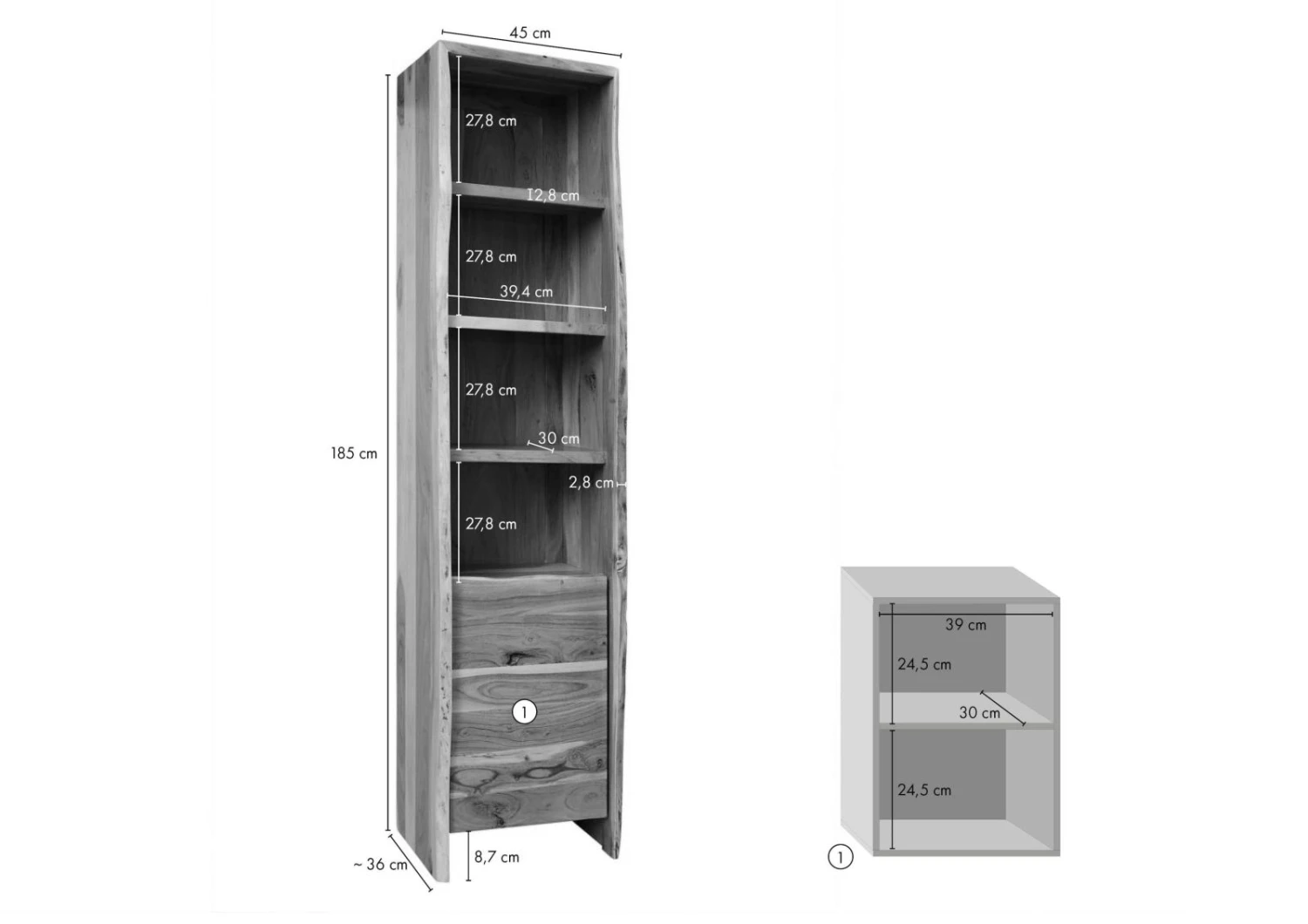 45x36x185 cm (LxPxA)