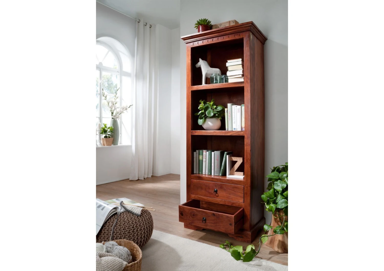 Per mostrare i tuoi libri più belli o altri elementi decorativi, questa scaffalle / libreria in stile coloniale troverà il suo posto in una biblioteca, in un ufficio o anche in un salotto. Le sua finiture laccata e la tonalità marrone daranno un tocco caldo e amichevole alla tua stanza. Il suo design elegante ti ispira? Sentiti libero di scoprire il resto della nostra collezione di mobili OXFORD perfettamente compatibile con il design di questo scaffale.
