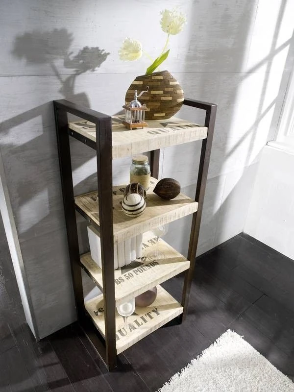 Lo scaffale moderno fa parte della serie FACTORY . Lo stile industriale leggero e arioso che è ritratto in modo appropriato su questo scaffale offre uno spettacolo insolito. La speciale combinazione di caldo e freddo sotto forma di ferro e legno offre un contrasto visivo con un effetto vincente. Legno di mango caldo e confortevole, ottenuto dagli imponenti alberi di mango, che con un’altezza fino a 45 metri e un diametro fino a 10 metri rappresentano una generosa offerta di questa materia prima naturale, costituisce il materiale di base per questi ripiani solidi che vengono poi decorati di colore marrone chiaro. Per intensificare l’effetto sorprendente, che involontariamente sorge quando si guarda questo mobile, sulle parti in legno sono state stampate delle scritte giovanili. Le parti in ferro, realizzati in rettangoli di metallo, forniscono l’affascinante cornice su cui sono fissati i ripiani. Mentre la vernice scura sui lati metallici sottolinea l’aspetto confortevole e si fonde con i toni marroni del corpo per creare un look armonioso. Convenientemente il ripiano inferiore è stato montato leggermente sollevato nel telaio, in modo che sia possibile una pulizia sotto il mobile. I componenti d’arredo di questa serie possono essere utilizzati per combinazioni creative in base al gusto e alle esigenze personali, con la vasta gamma di mobili in stile industriale.