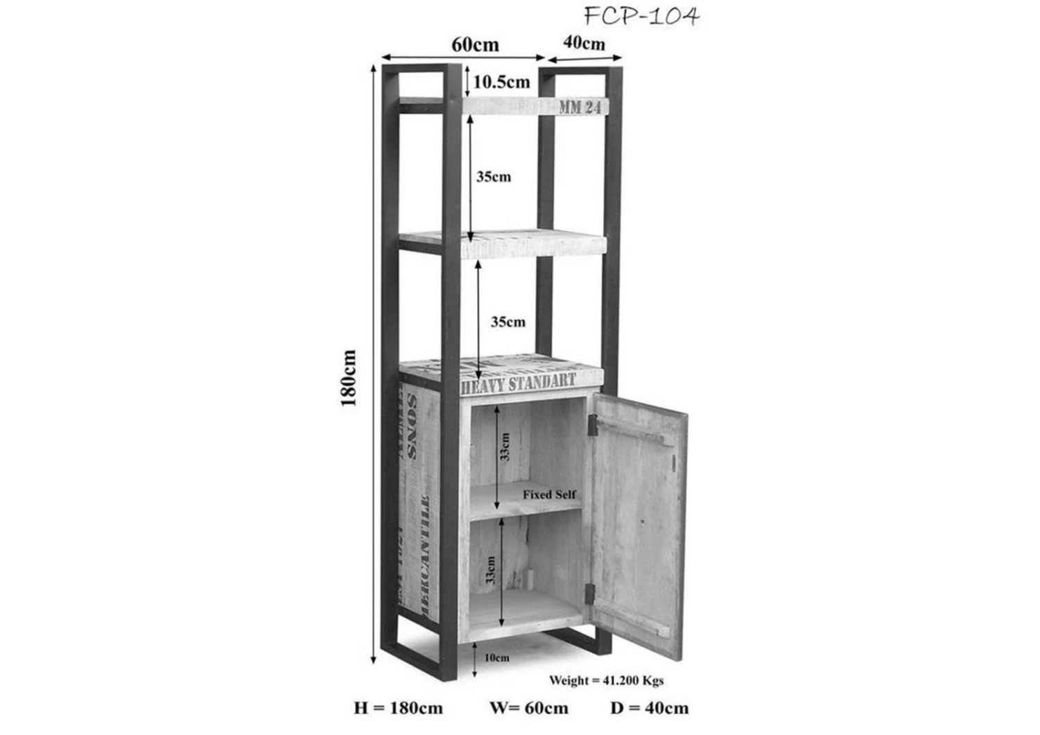 60x40x180 cm (LxPxA)