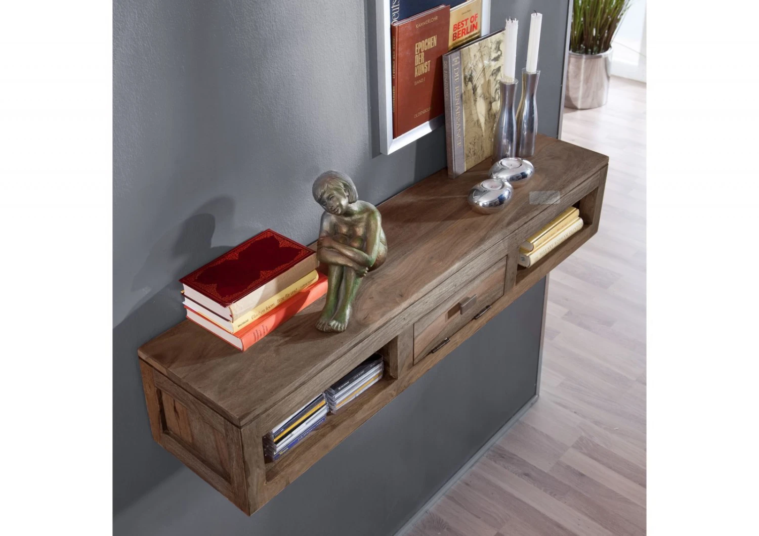del prodotto scaffale in legno di Sheesham / palissandro 110x25x20 grigio scuro oliato NATURE GREY #0107