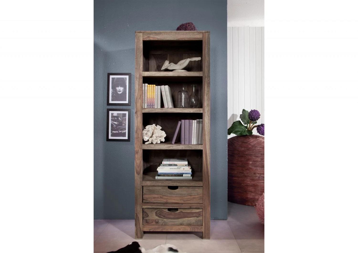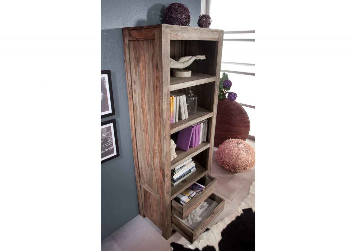 del prodotto scaffale in legno di Sheesham / palissandro 65x42x180 grigio scuro oliato NATURE GREY #50