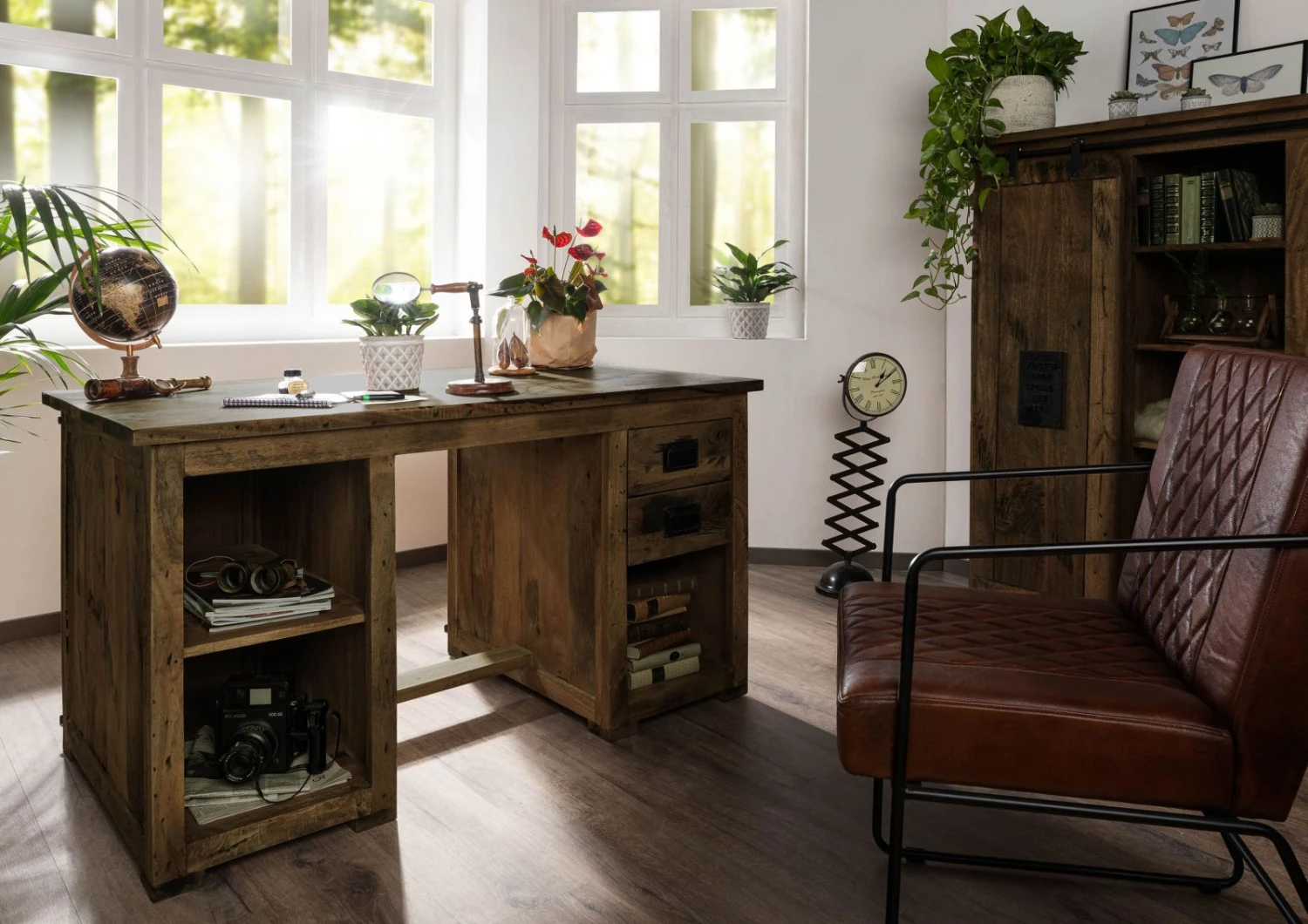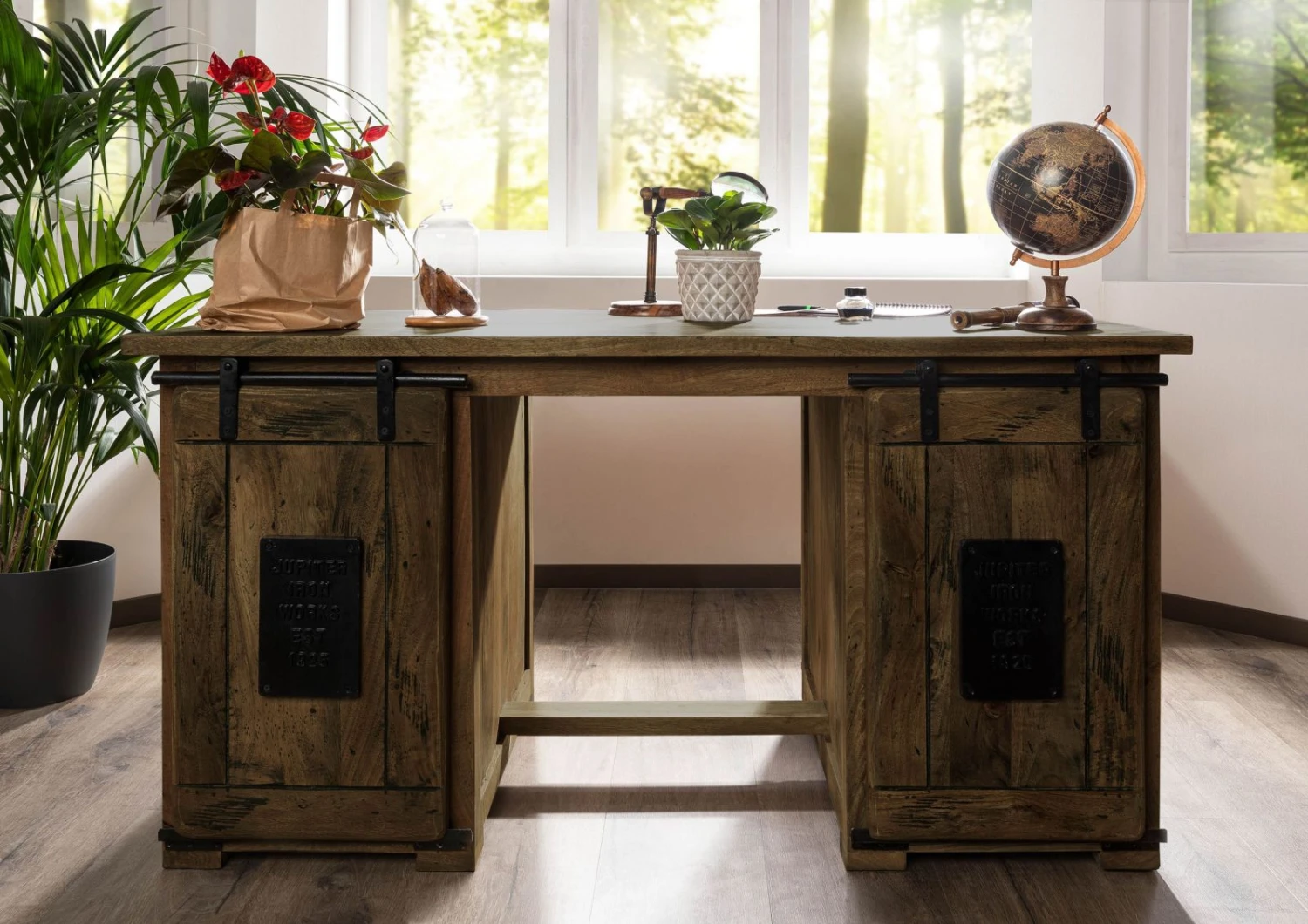 Scrivania in legno massello di mango in stile industriale: il legno incontra il metallo