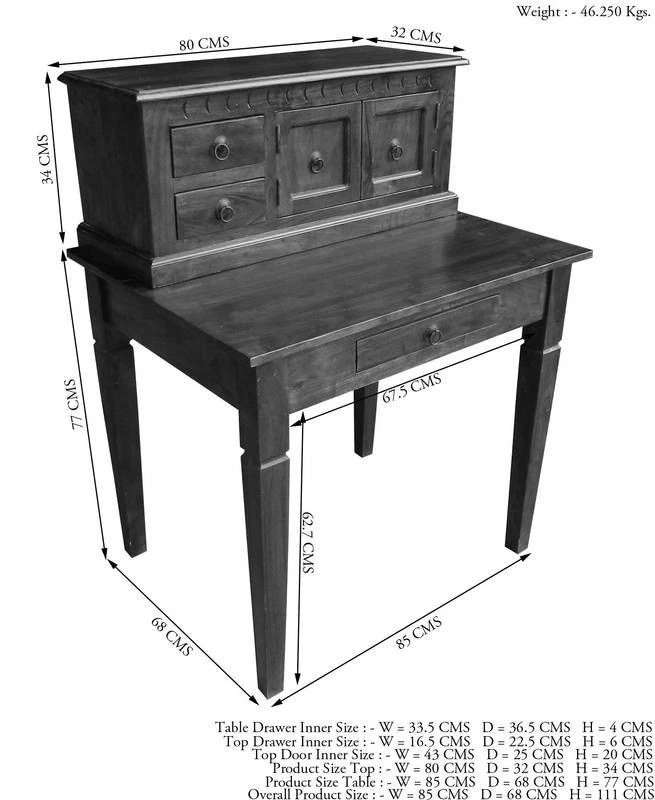 del prodotto scrivania in legno di Acacia 85x68x111 nougat laccato OXFORD #507