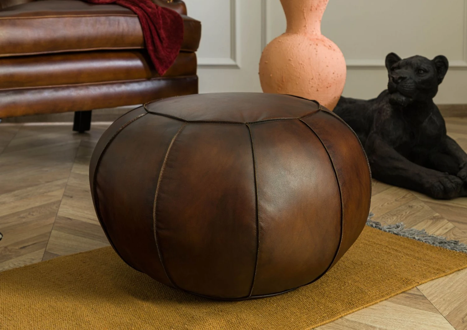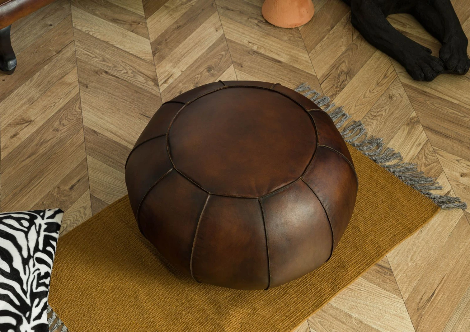 - Elegante pouf con pregiato rivestimento in vera pelle (pelle di bufalo)