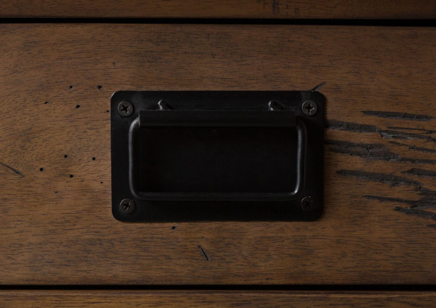Cuore pulsante del design sono tuttavia le due ante scorrevoli. Ancorate su una barra di ferro in facciata, celano o svelano a piacere gli scomparti interni. Il mobile si articola su sei scaffali e quattro cassetti, riservando spazio a sufficienza per posate, stoviglie e altri accessori per la casa.