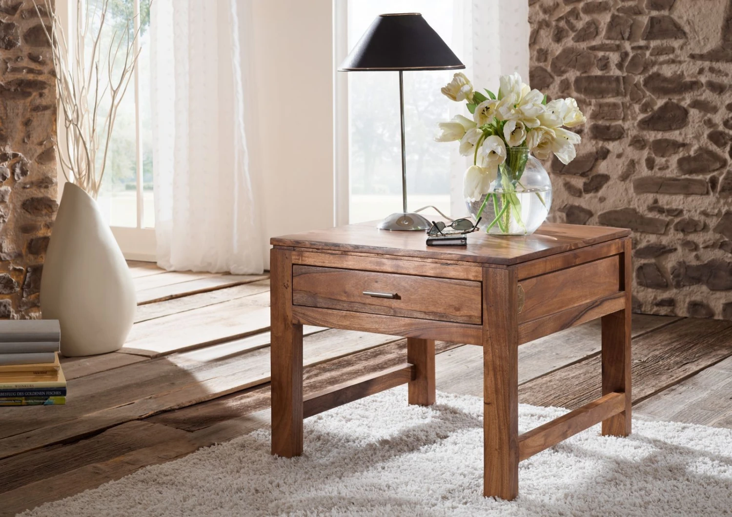del prodotto tavolo d’appoggio in legno di Acacia 60x60x50 miele dorato laccato SHAMAN #71