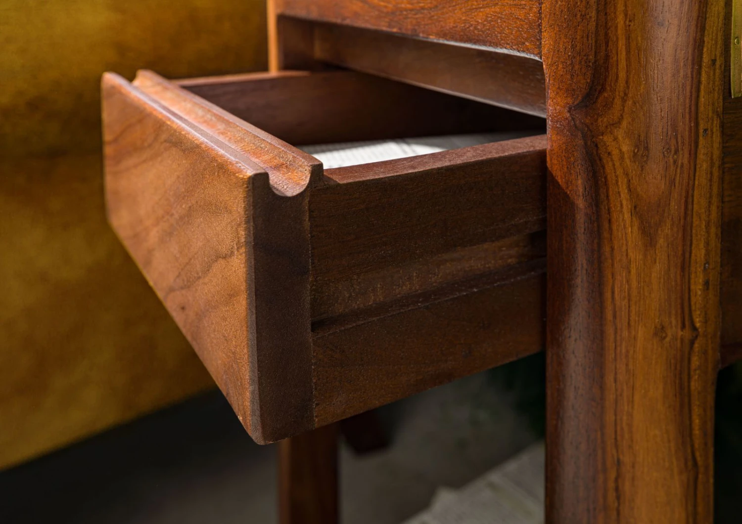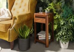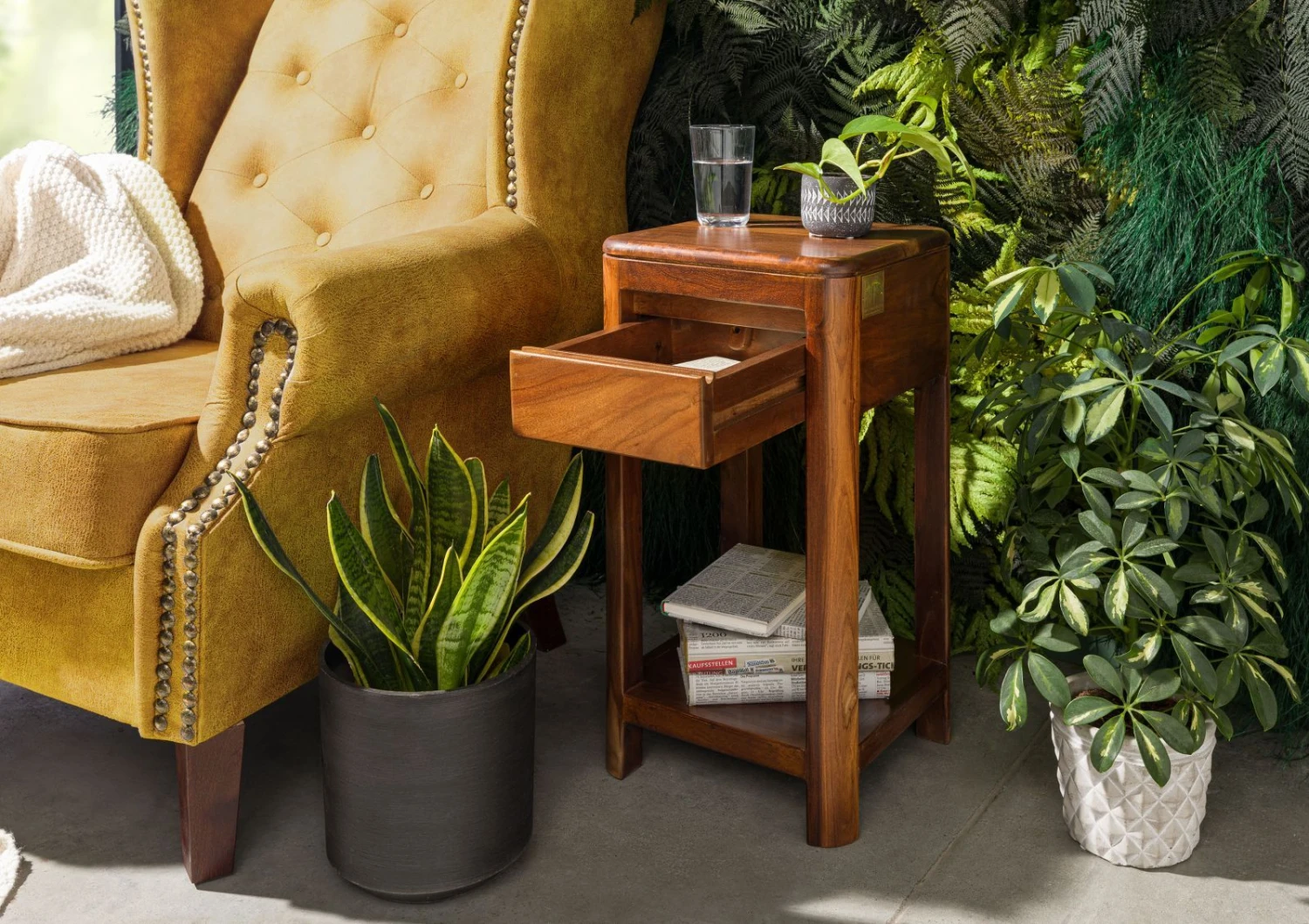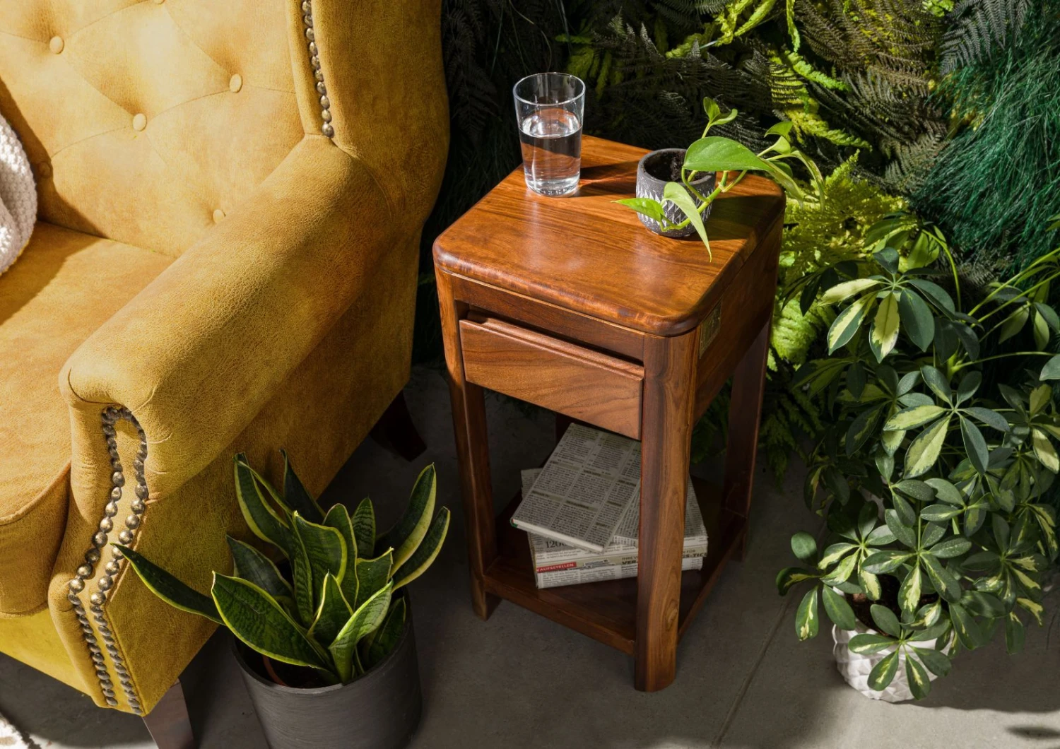 Le dimensioni non contano quando si ha una personalità smisurata. Questo moderno tavolino in legno massello di sheesham acacia si fa immediatamente notare dovunque venga collocato. Il suo design è estremamente semplice ma molto curato. Il color noce cerato asseconda morbidamente le linee lisce e levigate della superficie. Le stupende sfumature del durame diventano poi vere e proprie decorazioni pittoriche senza bisogno di aggiungere altro allopera di madre natura. Un cassetto, un ripiano superiore e uno inferiore offrono sufficiente spazio per riporre piccoli oggetti e soprammobili. È un tavolino in legno massello perfetto da posizionare nellingresso, ma può sostituire egregiamente anche un tradizionale comodino.