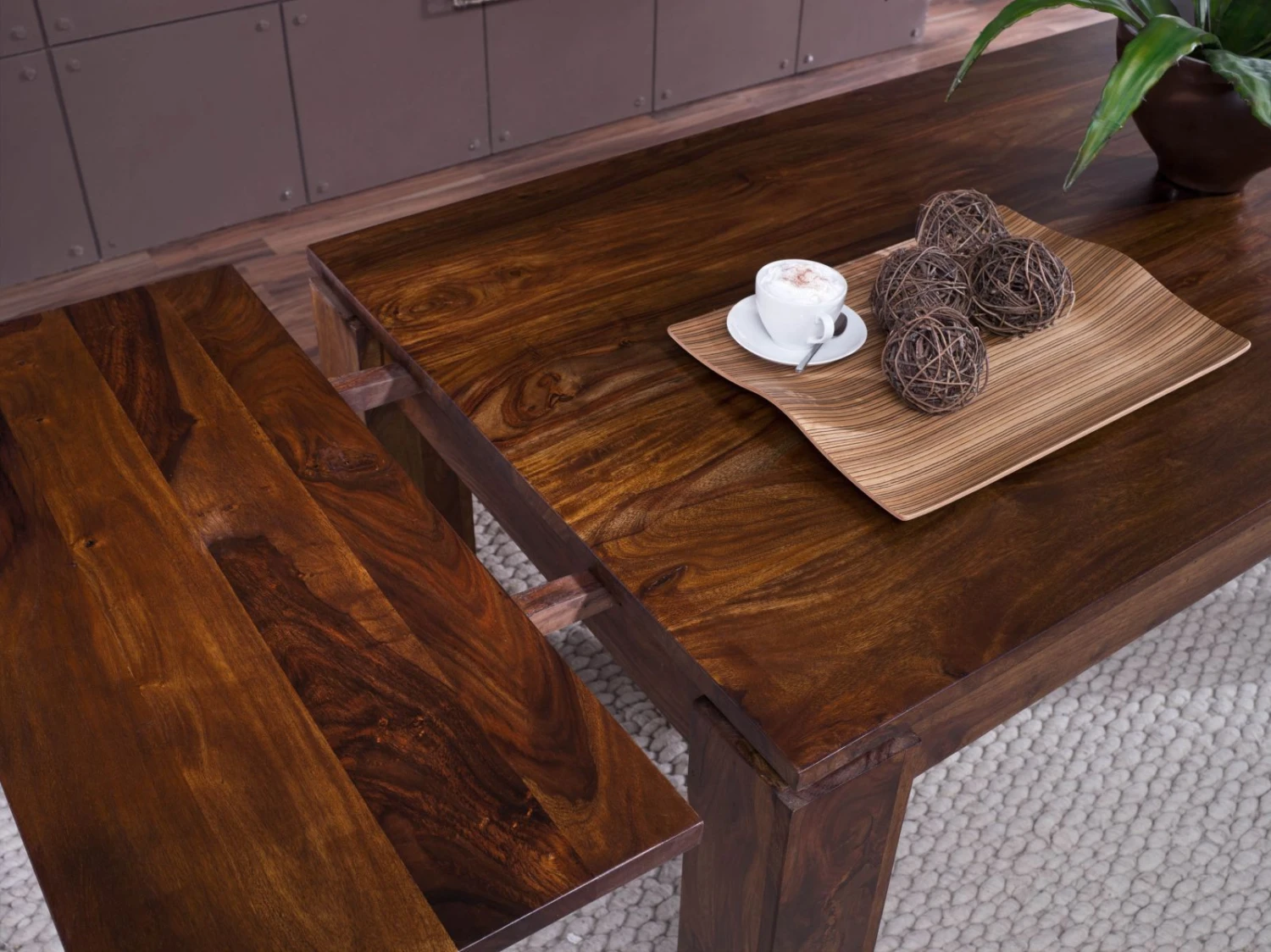 Pratico e funzionale, questo tavolo da pranzo allungabile ti permetterà di invitare fino a 6-8 persone con le sue due estensioni incluse. Ideale per ospitare un grande pasto conviviale, questo tavolo in legno massello sarà essenziale per condividere momenti preziosi e indimenticabili circondati da tutti i tuoi cari. Il suo design pulito e semplice migliorerà anche la naturale bellezza del solido sheesham / palissandro, aggiungendo un tocco di originalità ed eleganza al tuo arredamento.