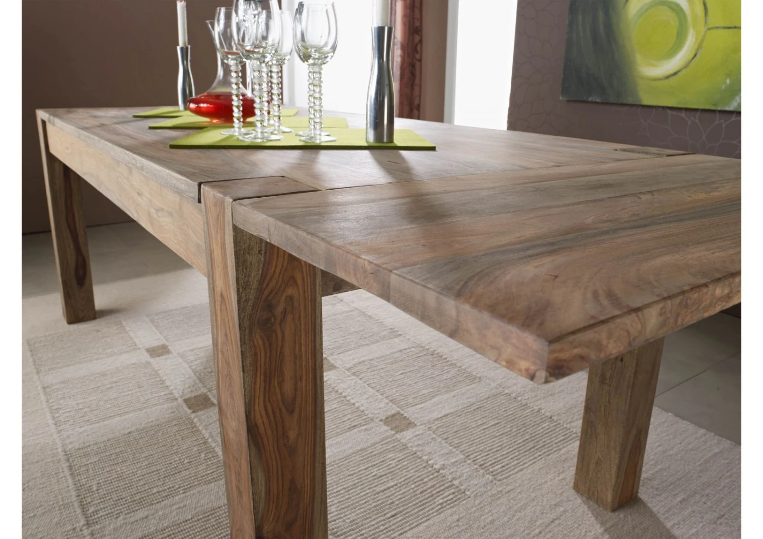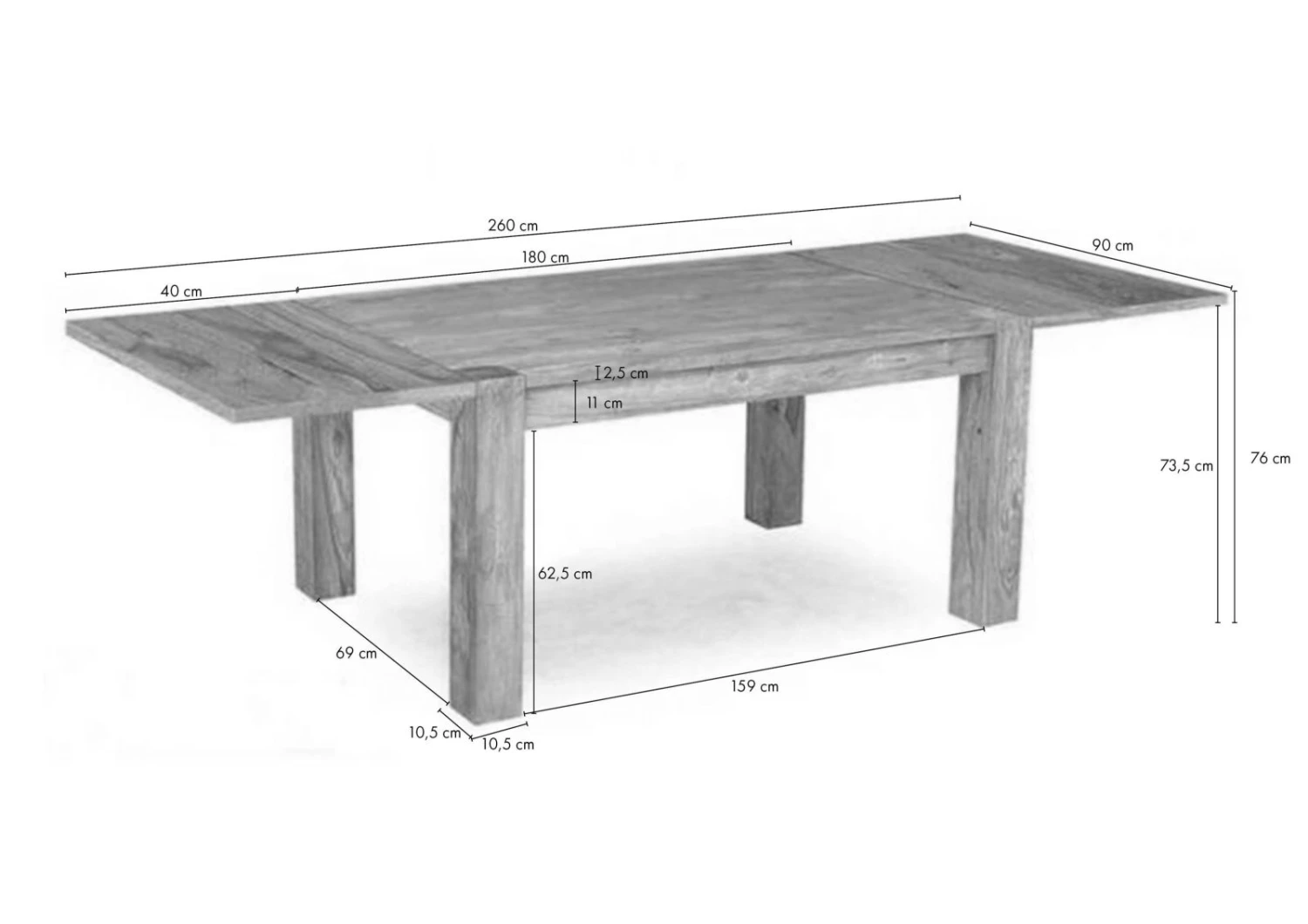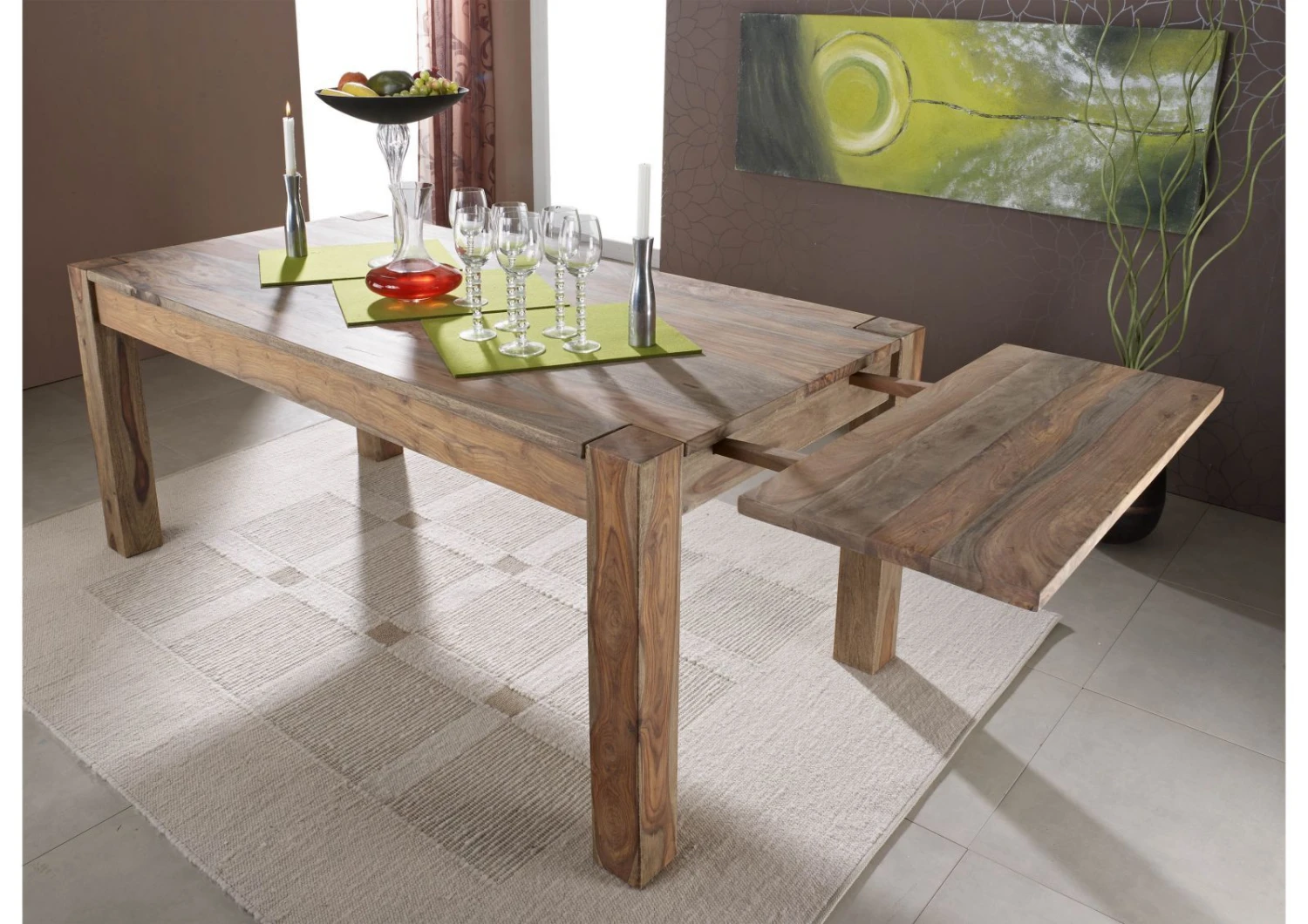Grazie a questo tavolo allungabile della linea NATURE GREY e sedie o mobili d’appoggio abbinati, potrete rendere molto accogliente la vostra sala da pranzo. Non solo voi e i vostri ospiti avrete spazio a sufficienza per trascorrere una serata in relax, ma sarete anche soddisfatti di questo mobile durevole che soddisferà tutte le vostre esigenze. Potrete godervi non solo il buon cibo, ma anche la bellezza di questo mobile. Con questo tavolo da pranzo NATURE GREY renderete molto particolare la sala da pranzo o il vostro salotto. Si abbina facilmente e con quasi tutti gli stili di arredamento già esistenti o con altri mobili della linea NATURE GREY, come sedie, vetrine e pannelli decorativi da parete. Oltre alla scelta della materia prima, la bellezza di questo tavolo è dovuta anche alla sua lavorazione delicata. Il palissandro usato per questo mobile è considerato da sempre un legno nobile di alta qualità, impiegato di frequente per la realizzazione di elementi di arredo. L’eleganza e la resistenza dei mobili di questa linea sono dovute, oltre alla scelta della materia prima, anche alla lavorazione. In questa linea i colori naturali rosso, giallo e marrone del durame sono stati lasciati inalterati e solo l’alburno è stato trattato unicamente con dell’olio. Così, è stata realizzata una colorazione sorprendente tendente al grigio che esalta in modo particolare la straordinaria struttura e le magnifiche venature del legno di Sheesham. La particolarità della superficie sta nelle due assi grazie a cui si può allungare il tavolo di alcuni centimetri per accogliere più ospiti o per avere lo spazio per appoggiare le vostre prelibatezze.