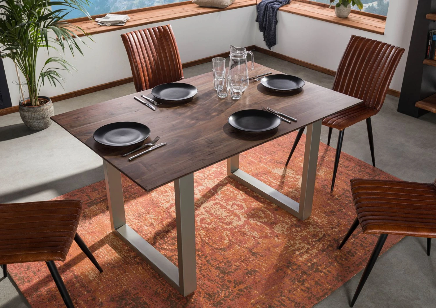 del prodotto tavolo da pranzo in legno di Acacia 140x90x76 grigio scuro laccato SWISS EDGE