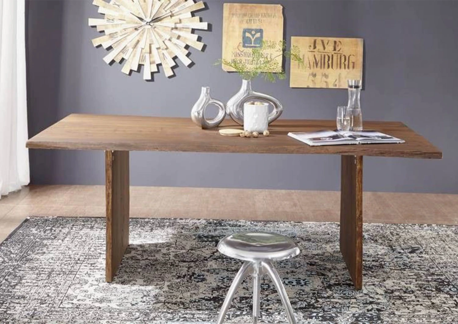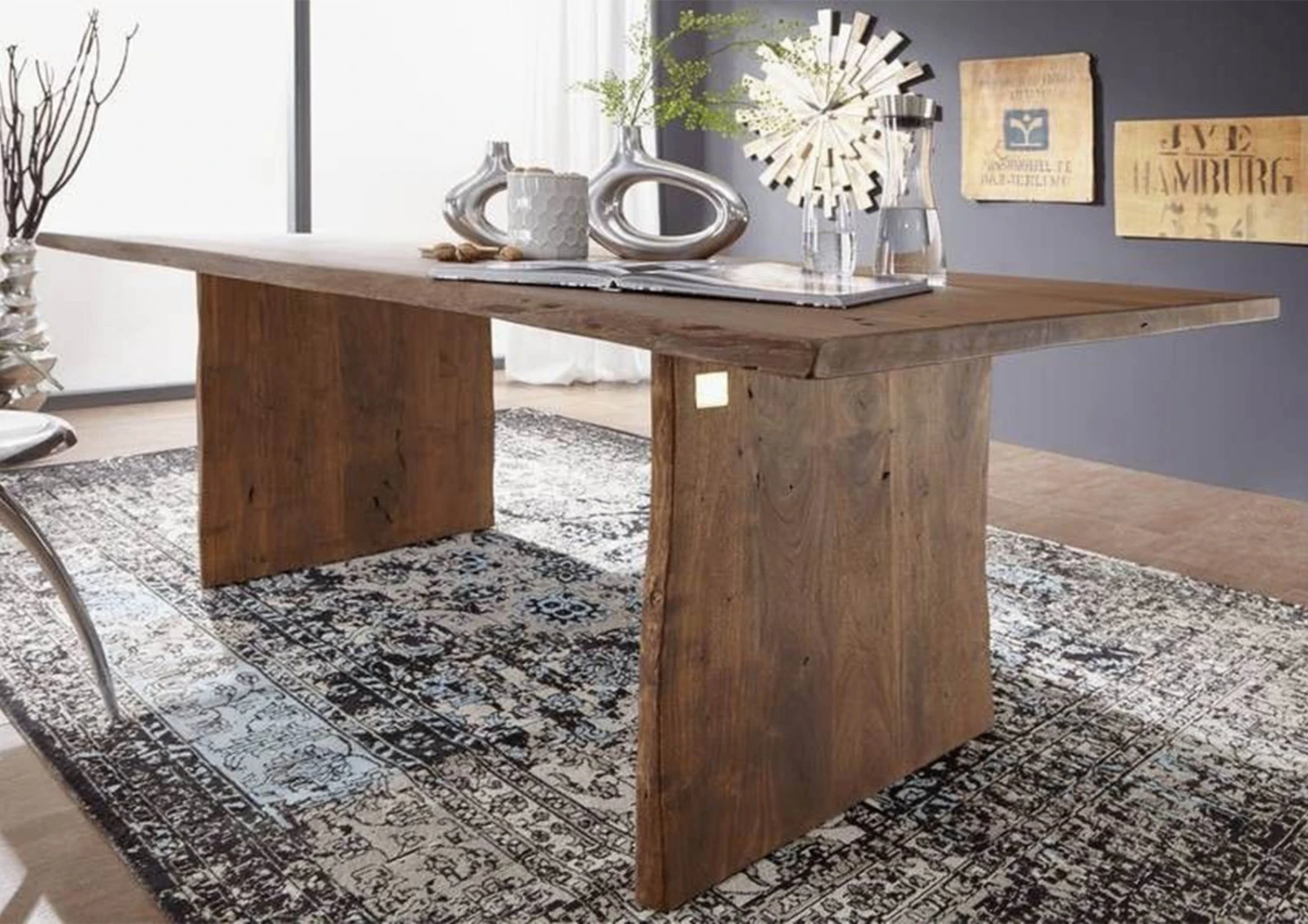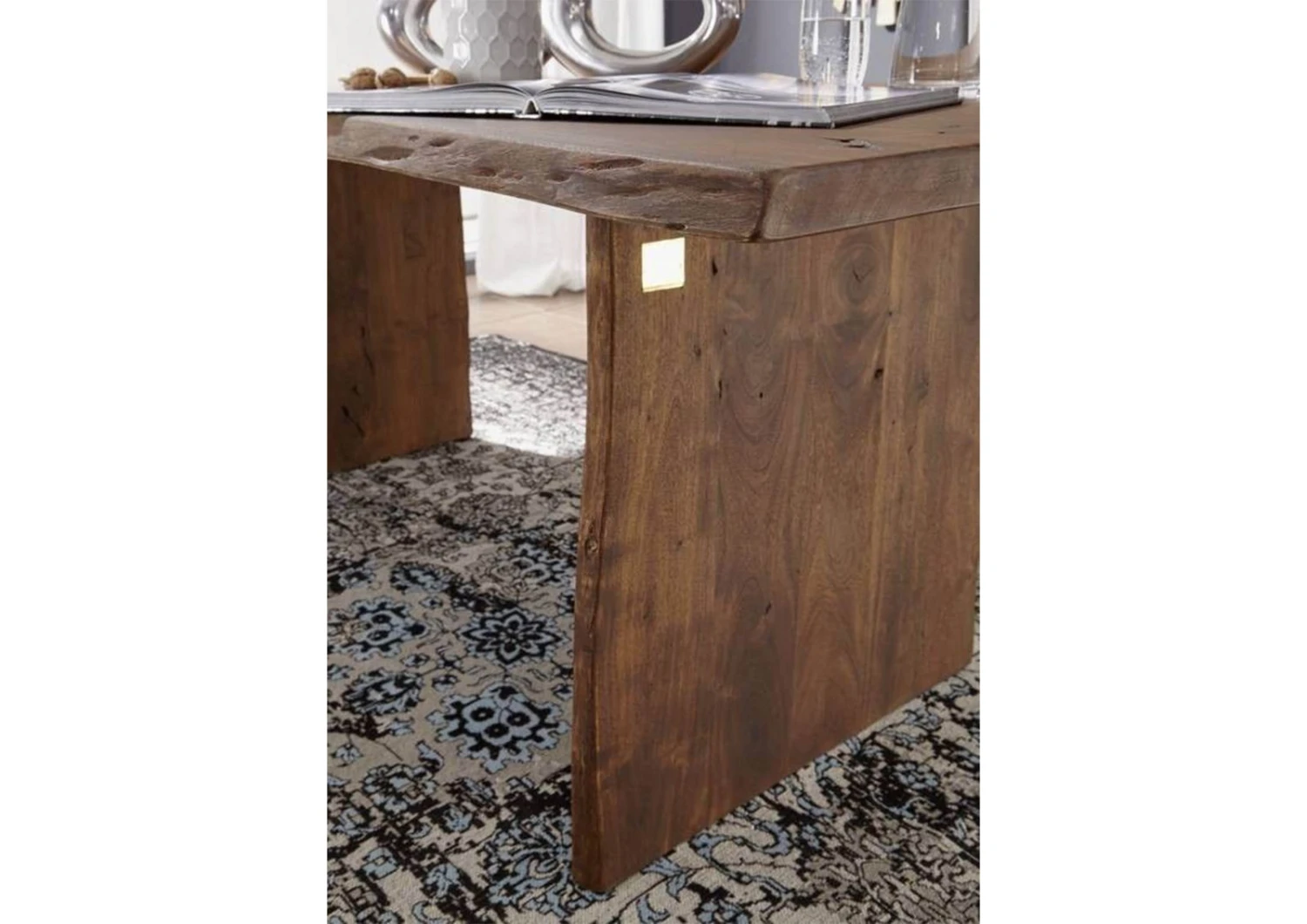 Amate i mobili unici? Allora dovreste dare un’occhiata a questo tavolo della serie PURE ACACIA! Questo splendido tavolo da pranzo ha un bordo irregolare che conserva la forma originaria dell’albero. Anche i bordi laterali delle gambe in legno hanno un design naturale e conferiscono al tavolo un aspetto originale e chic. Un dettaglio di alto livello è la tintura scura, grazie alla quale il tavolo in acacia può essere perfettamente combinato con altri legni scuri per creare un look armonioso nella stanza.