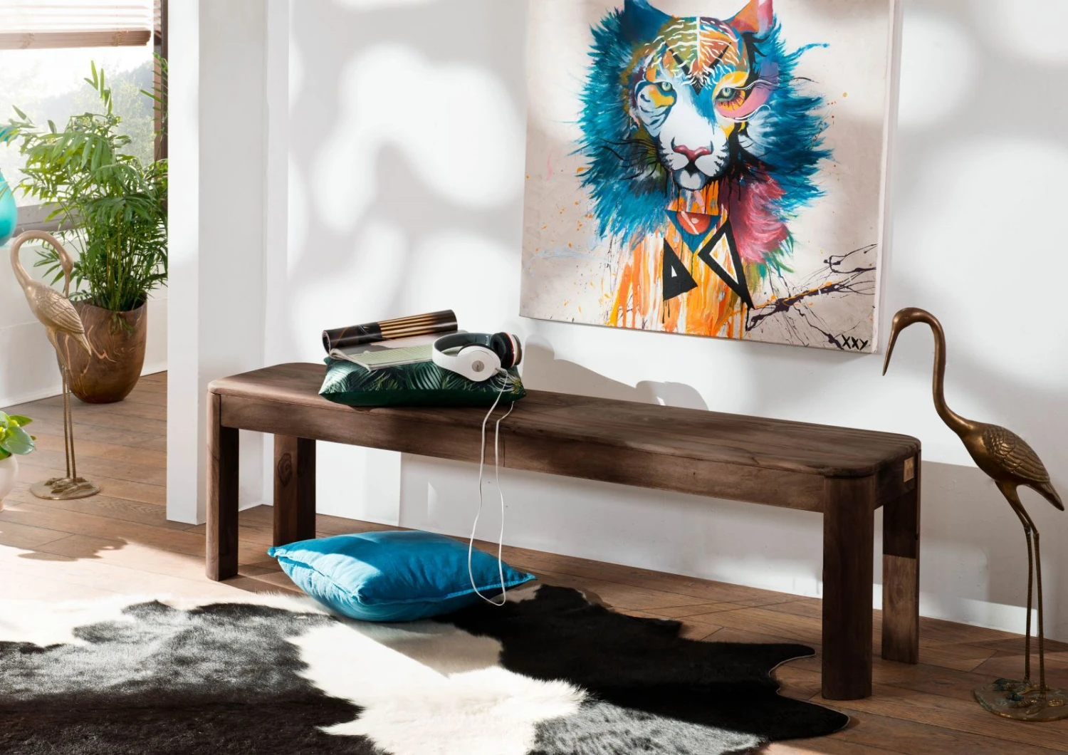 Ecco un elemento di interior che, se usato adeguatamente, può fare la differenza tra riempire un ambiente ed arredarlo. Questa panca in legno massello di sheesham acacia può rivelarsi una vera risorsa per chi ha fervida immaginazione e abbastanza spazio a disposizione per darle sfogo. Intorno a un tavolo, ad esempio, è unottima alternativa alle tradizionali sedie. Ai piedi del letto diventa un elegante e utile superficie dappoggio. Nellingresso infine può sostituire una consolle, o qualunque altro accessorio di design. Il suo profilo lineare è praticamente senza tempo, in bilico tra rustico e contemporaneo. Il color ciliegia affumicato della panca in legno massello ne suggerisce la solidità e la robustezza. Si tratta di un componente darredo fatto per sfidare gli anni senza perdere nulla del suo fascino suggestivo.