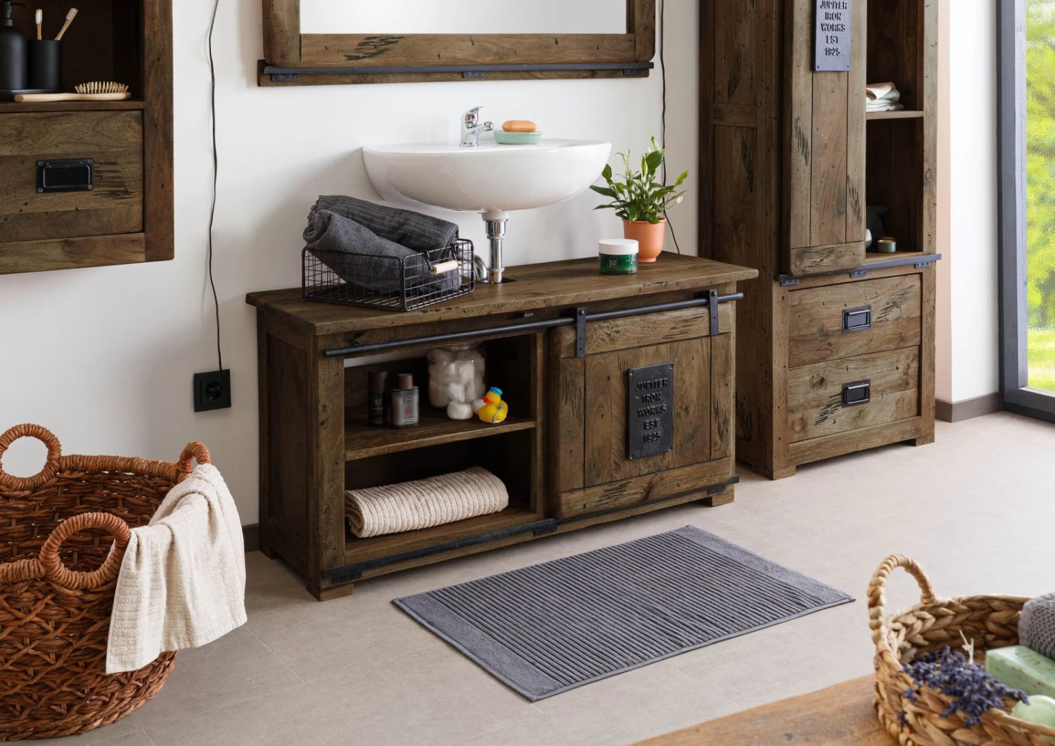 Elegante mobile in stile industriale per il bagno