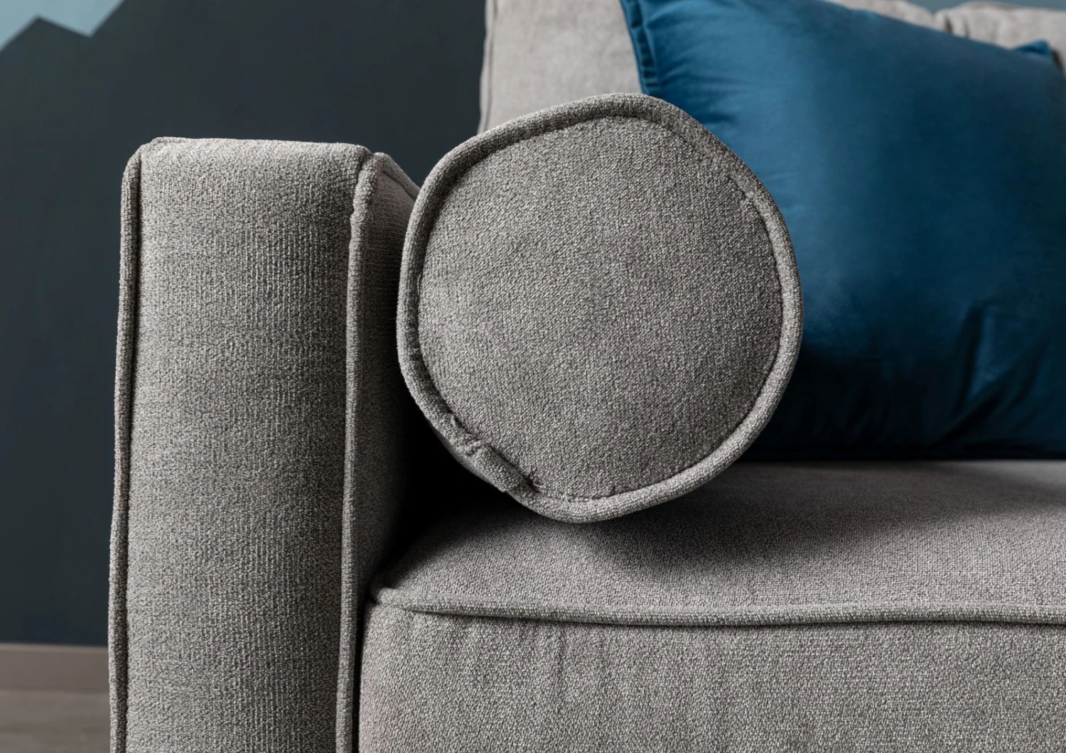Questo è realizzato in poliestere di facile manutenzione, che coccola chi si siede grazie alla sua superficie vellutata. Il tessuto si adatta perfettamente all’imbottitura, la cui anima è in morbida schiuma. Una preziosa trapuntatura adorna gli schienali e funge da elemento stabilizzante. Due cuscini cilindrici rendono l’aspetto più gradevole e sono un sostegno versatile per la schiena, le braccia o le gambe.