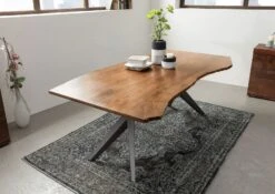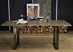 FREEFORM 4 Tavolo Da Pranzo In Legno Di Acacia – Laccato Grigio / Ferro – Antracite Mat 180x90x76