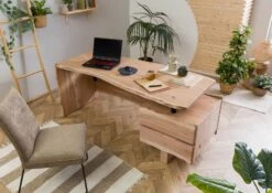 PURE ACACIA #152 Scrivania In Legno Di Acacia – Laccato / Naturale 210x70x76