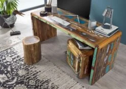 Scrivania In Legno Di Legno Riciclato 135x50x80 Multicolore Laccato INDUSTRIAL #43