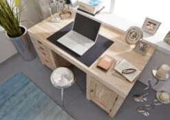 Scrivania In Legno Di Acacia 160x80x76 Marrone Crema Laccato TROMSO #003