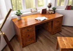 Scrivania In Legno Di Acacia 185x163x76 Marrone Laccato PURE ACACIA #849