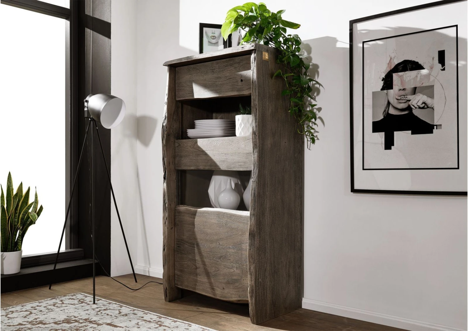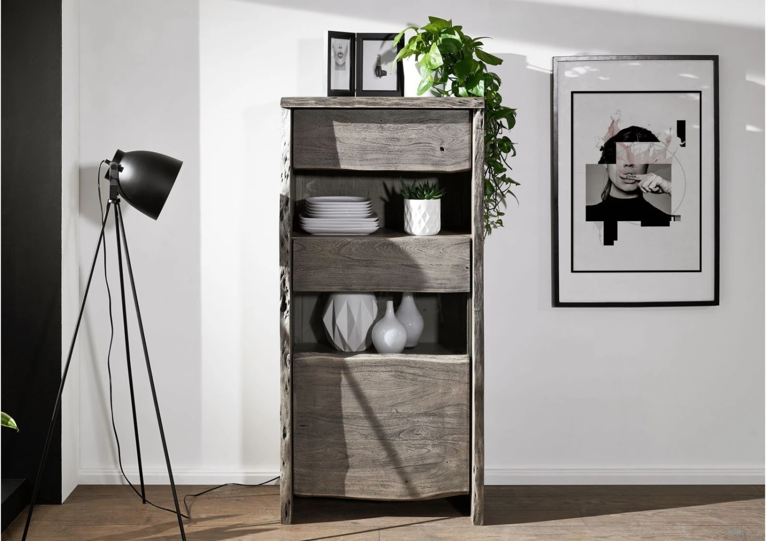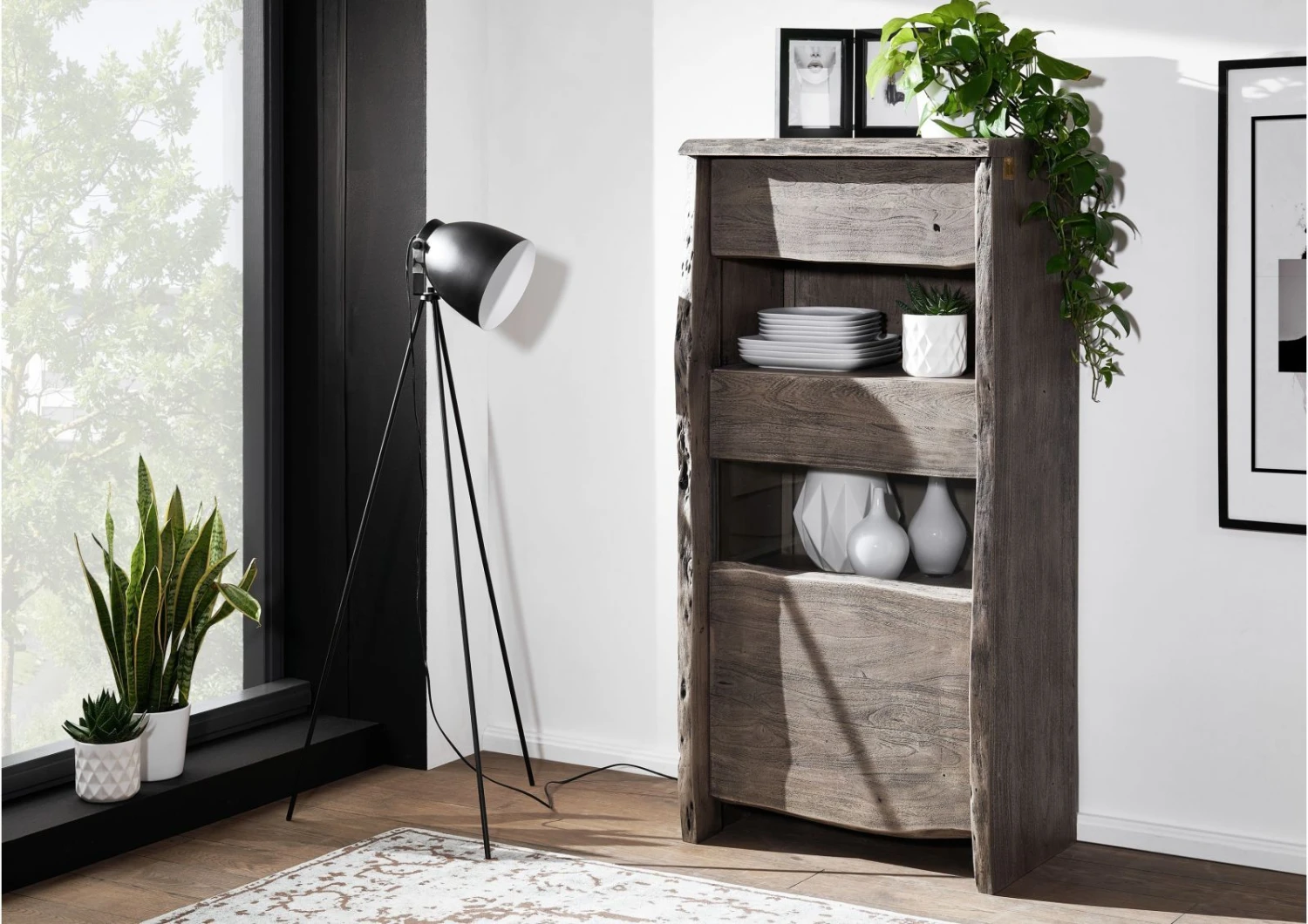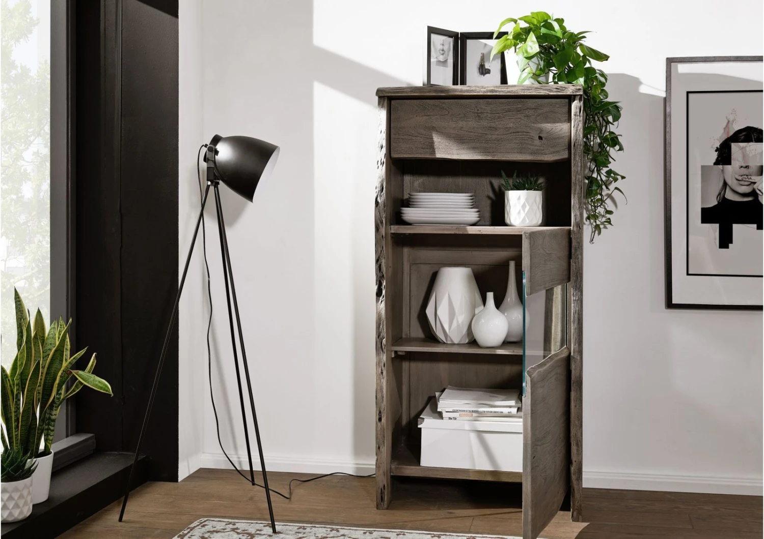 del prodotto vetrina in legno di Acacia 71x45x147 grigio scuro laccato PURE ACACIA #405