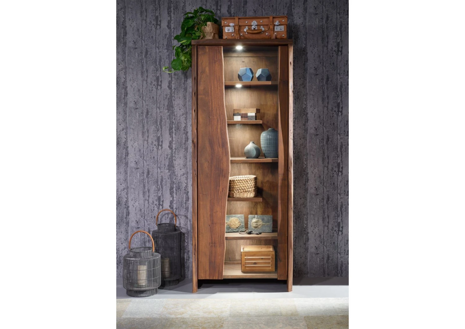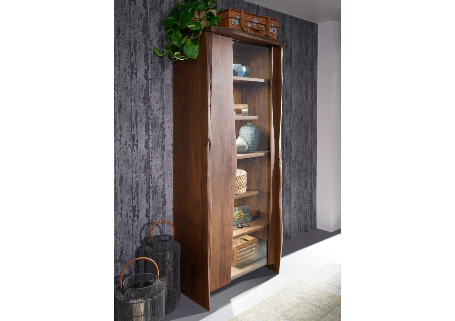 Design naturale per la vostra casa: questa vetrina della linea PURE ACACIA è un vero e proprio capolavoro, e lo è ancora prima che esponiate i vostri oggetti preferiti dietro l’anta in vetro! Realizzato in resistente e robusto legno di acacia, questo mobile colpisce per le sue intense venature. Piccole crepe, bordi curvi e altre particolarità completano l’aspetto naturale. I pannelli laterali e l’elemento in legno sul fronte, in particolare, sono ornati da bordi irregolari, che permettono d’immaginare come fosse maestoso l’albero da cui è stata ricavata questa vetrina.