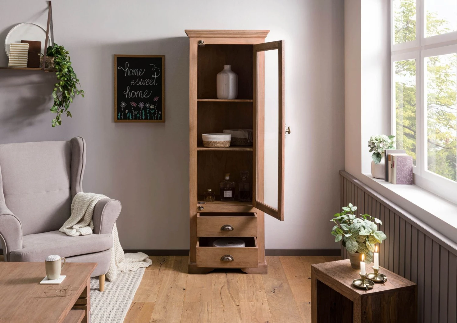 del prodotto Vetrina In legno di Mango 65x45x190 oliato beige TOULOUSE #02