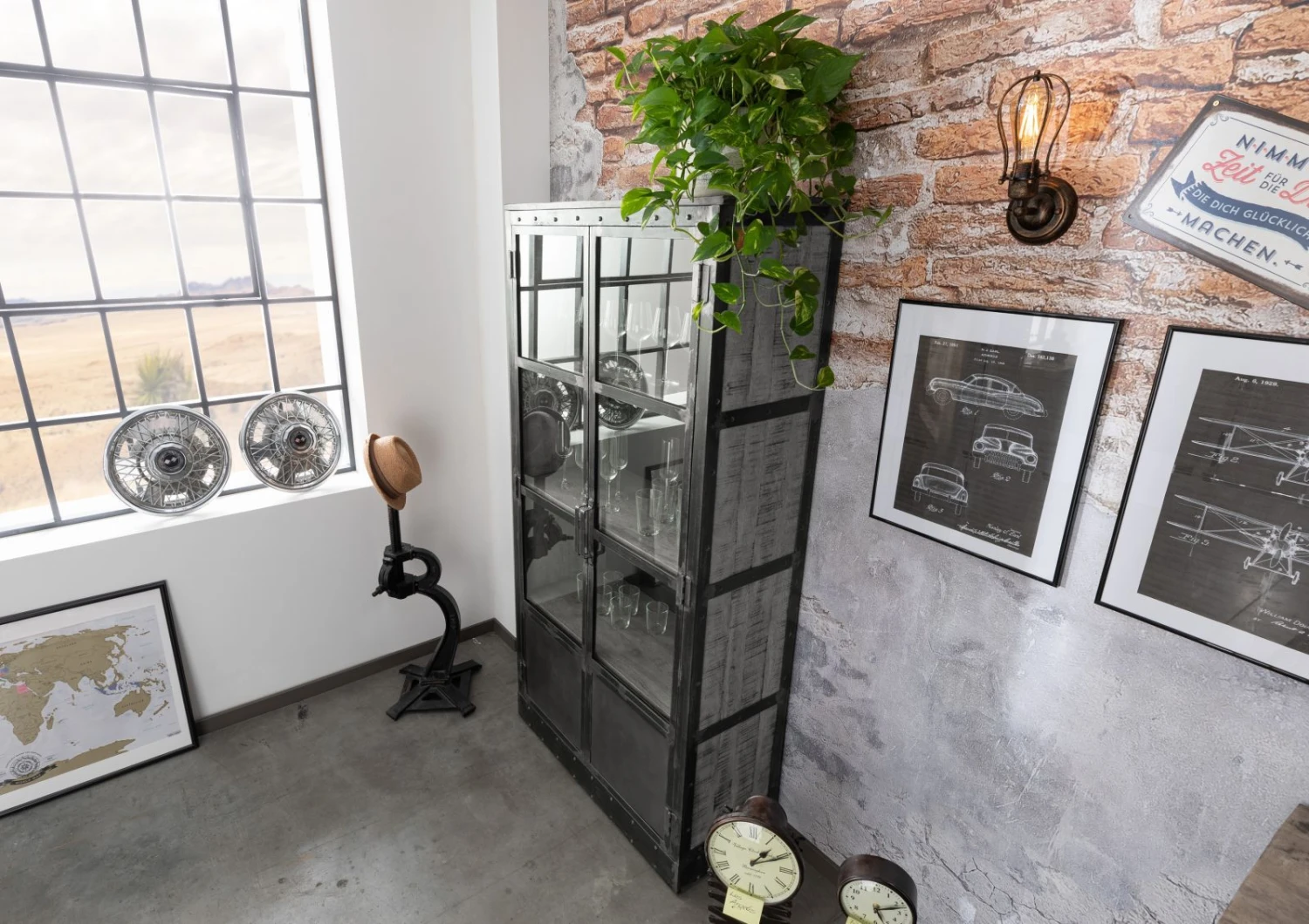 del prodotto vetrina in legno di Mango 92x40x185 grigio scuro laccato HEAVY INDUSTRY #143