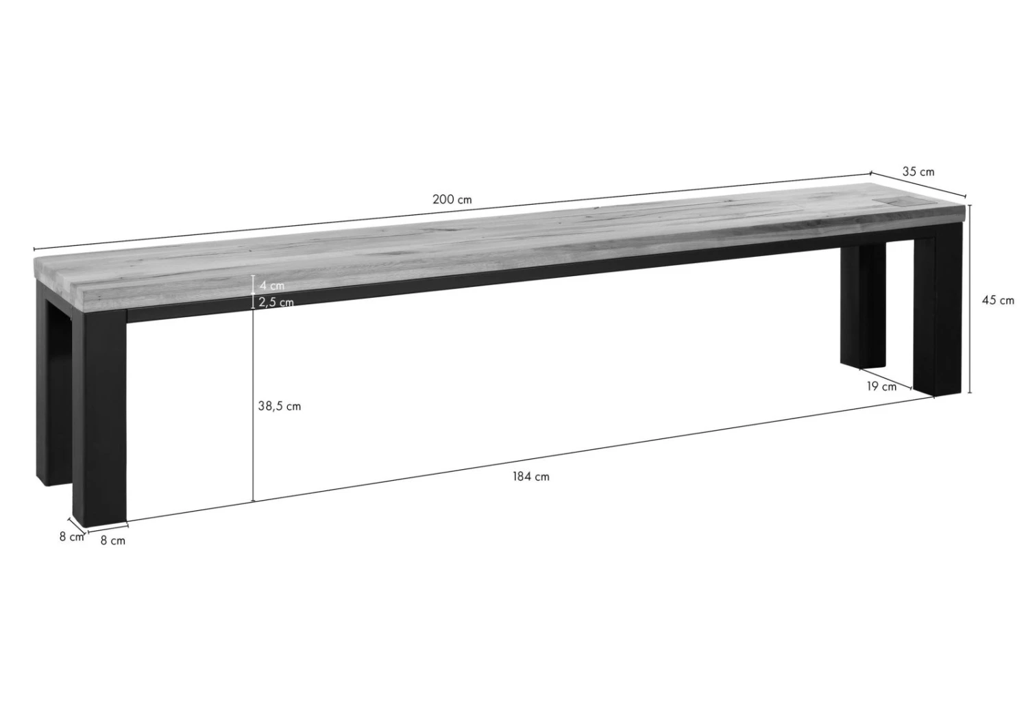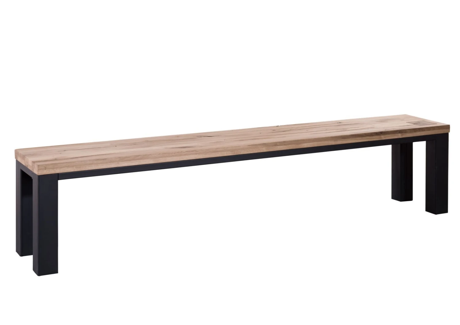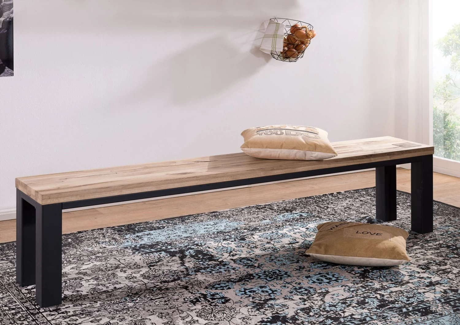 Panca in legno massello di quercia selvatica, complemento darredo ideale da abbinare ad un tavolo da pranzo della stessa collezione o in alternativa da utilizzare singolarmente in altri ambienti della casa. Le grandi dimensioni del mobile suggeriscono una collocazione allinterno di uno spazio adeguato e ben illuminato, anche per far risaltare le autentiche discromie della superficie oliata nella tinta originale. Su questa panca in legno massello possono accomodarsi tranquillamente dalle otto alle dieci persone. Robustezza e stabilità sono garantite dalla struttura metallica che si fonde alle perfezione con la trave superiore che fa da piano di seduta. La geometria minimale del manufatto sono di ispirazione contemporanea, nel segno della praticità e delleleganza.