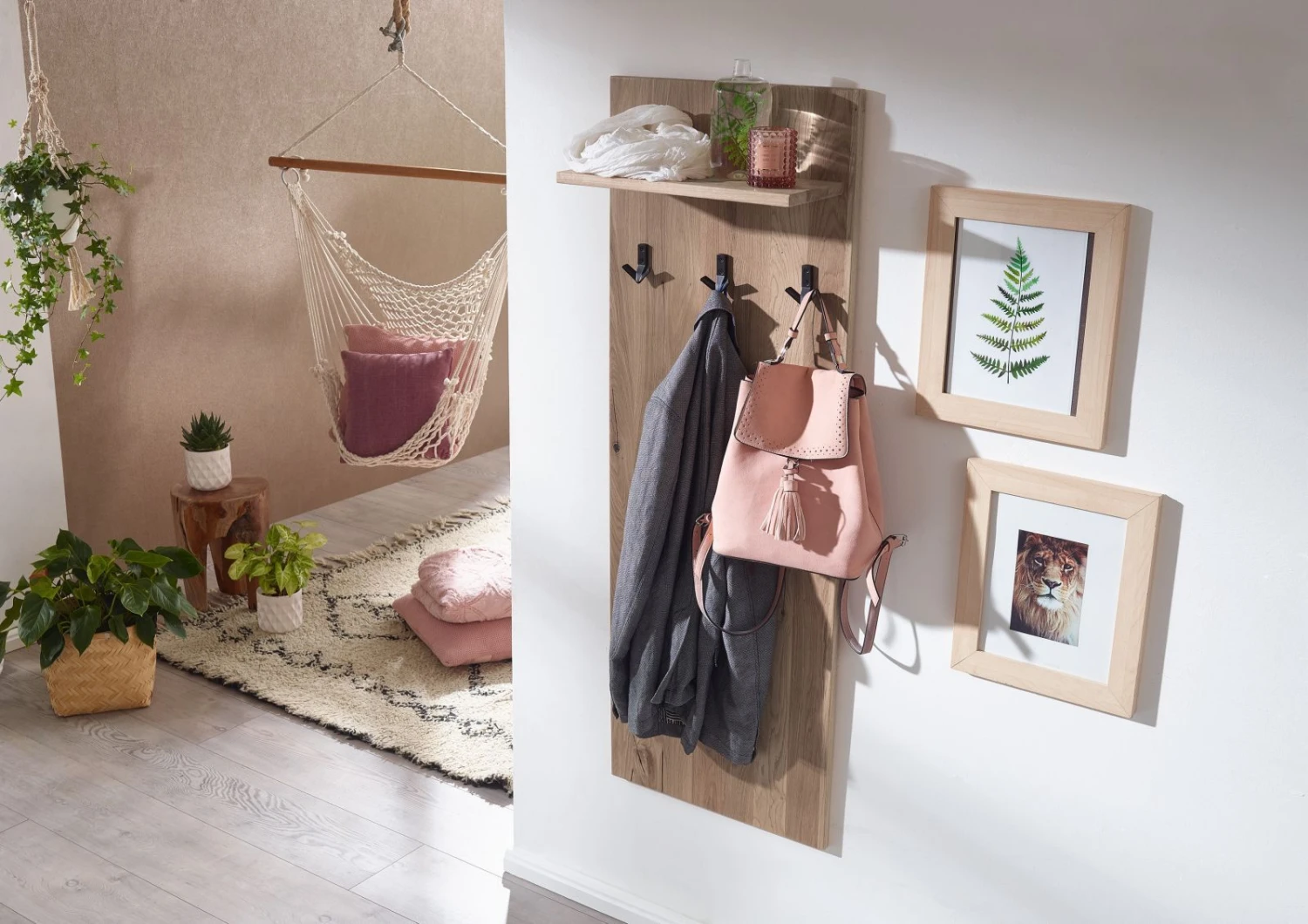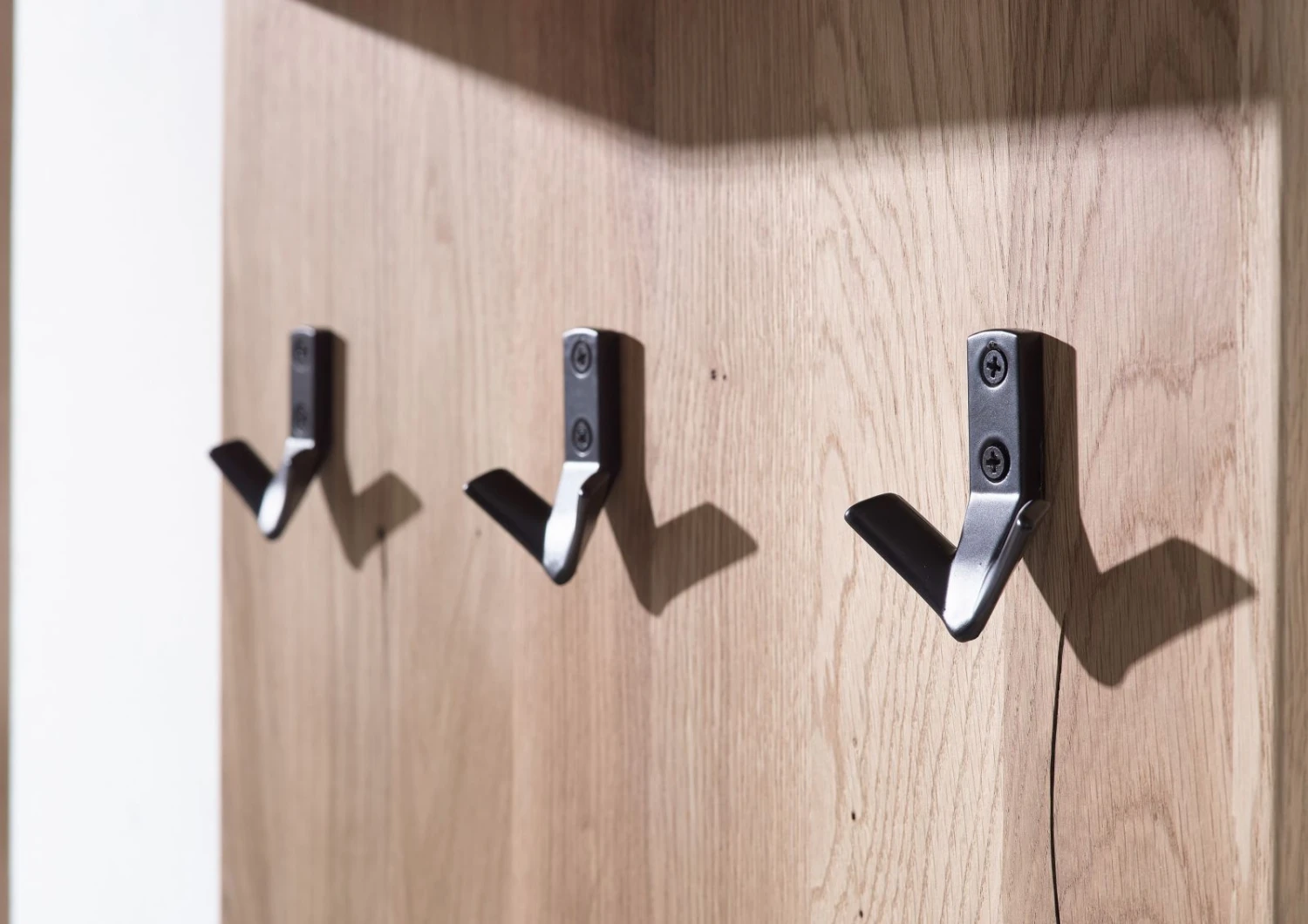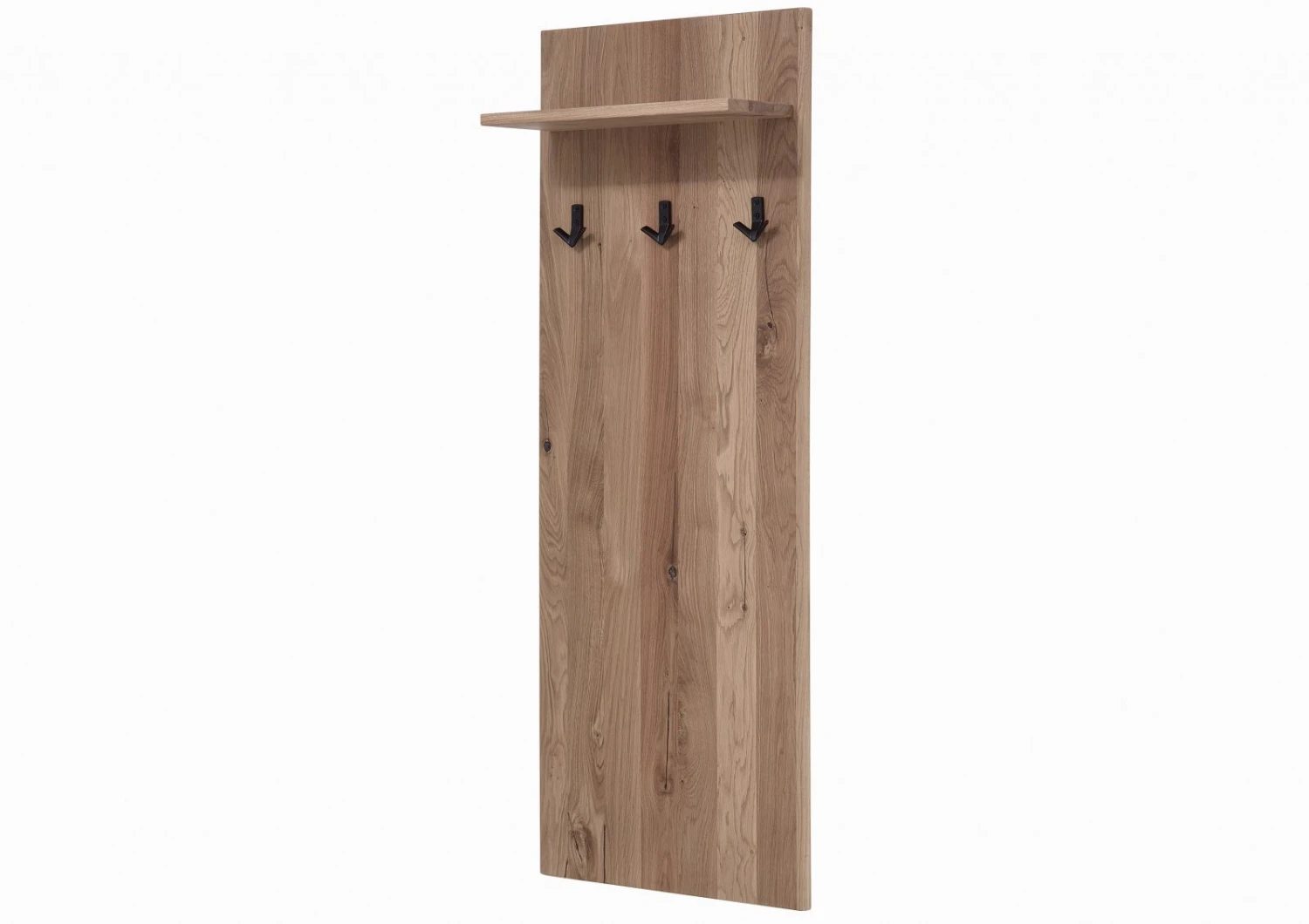 Appendiabiti in legno massello di quercia selvatica, estetica essenziale, design contemporaneo, superficie oliata per assicurare massima durevolezza e preservare la bellezza del materiale. Questo stupendo elemento darredo da parete è un connubio di raffinatezza e semplicità, perfetto per essere collocato nellingresso, come componente funzionale, decorativa e dal minimo ingombro. Lappendiabiti in legno massello è una pratica soluzione salvaspazio rispetto al tradizionale attaccapanni. È dotato di tre ganci per un totale di sei supporti e una mensola in alto da sfruttare come cappelliera o come ripiano per oggetti decorativi. Discreto ed elegante può essere sistemato alloccorrenza anche in camera da letto.
