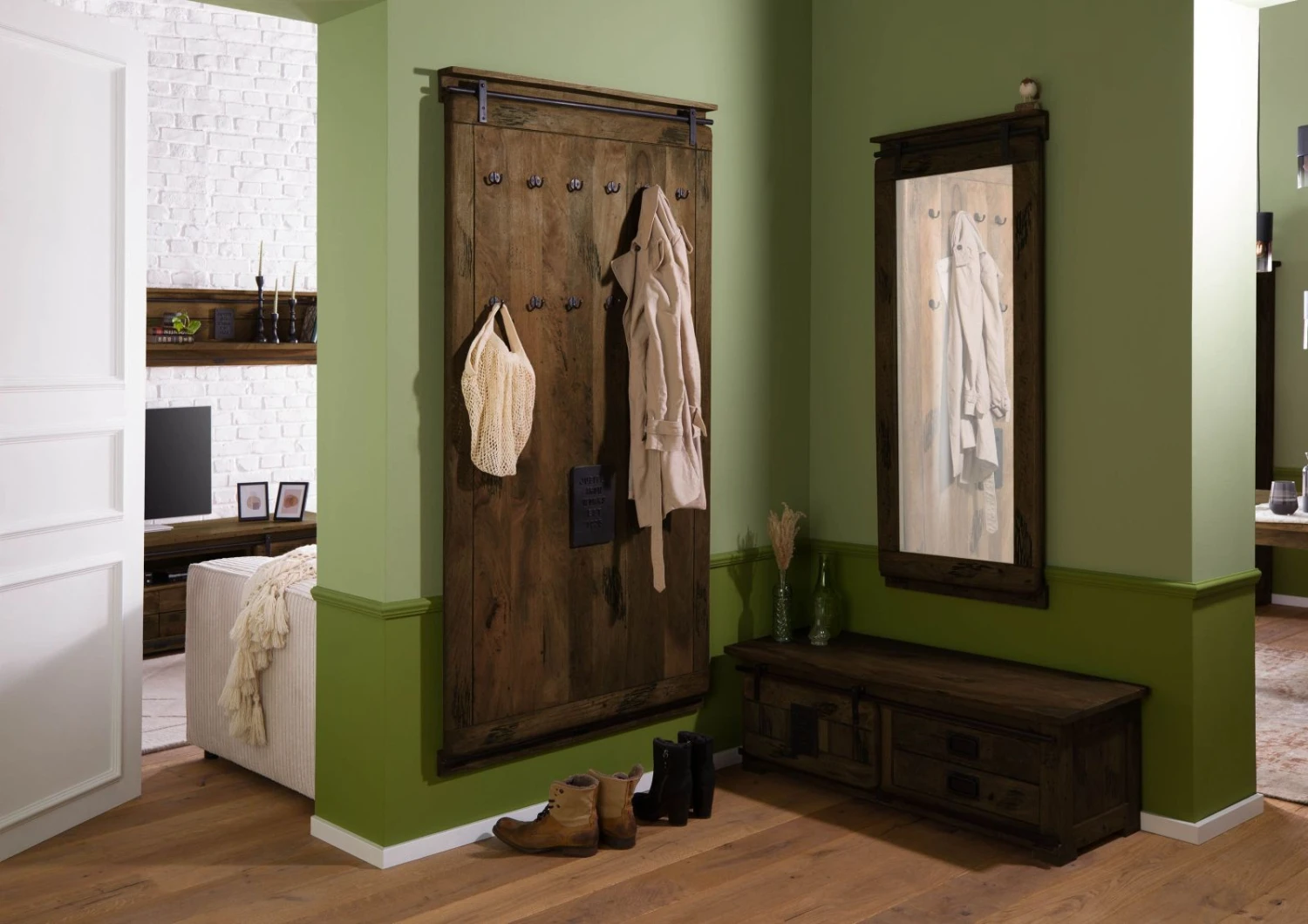 - Grande appendiabiti da parete in stile industriale in legno massiccio di mango